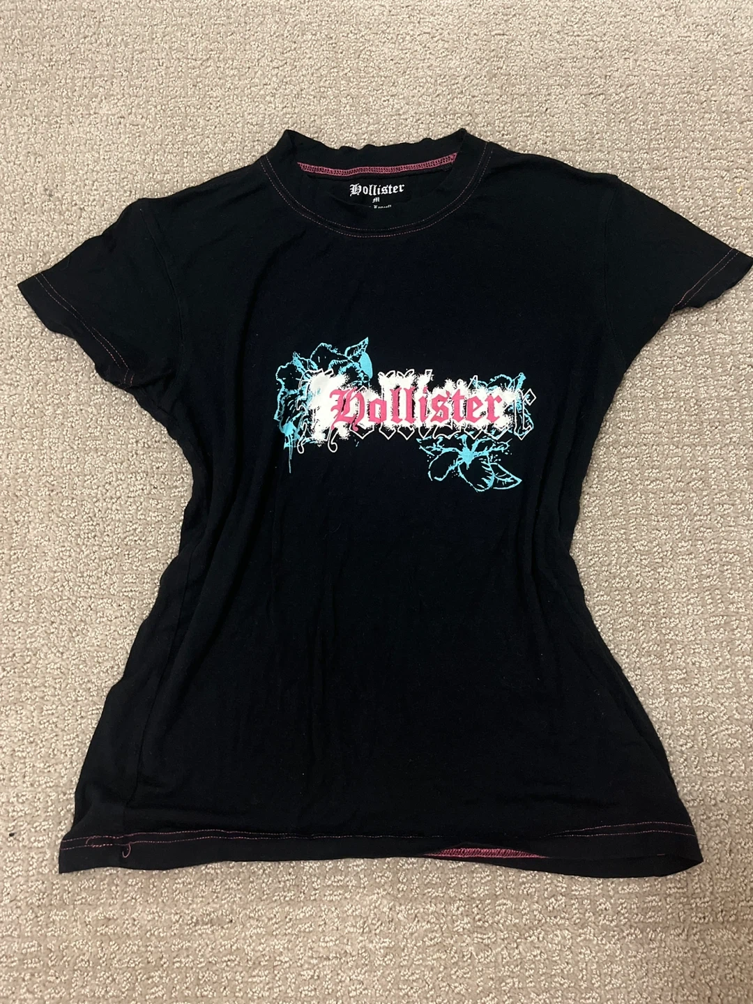 Selling a cute Hollister black t-shirt in size small! It features the Hollister logo on the front. The material is soft and comfortable, perfect for everyday wear