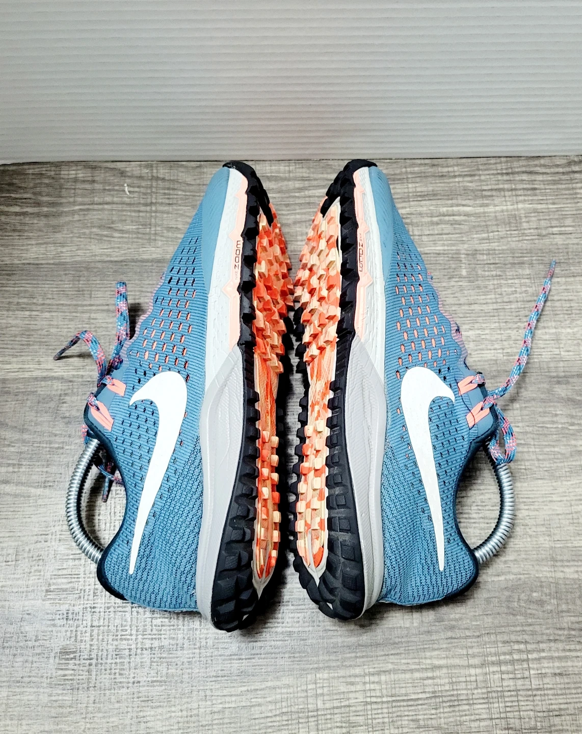 Selling a pair of Nike Air Zoom Kiger 4 running shoes in blue! They are a US size 8. Please note there is some visible wear and tear, as shown in the photos.