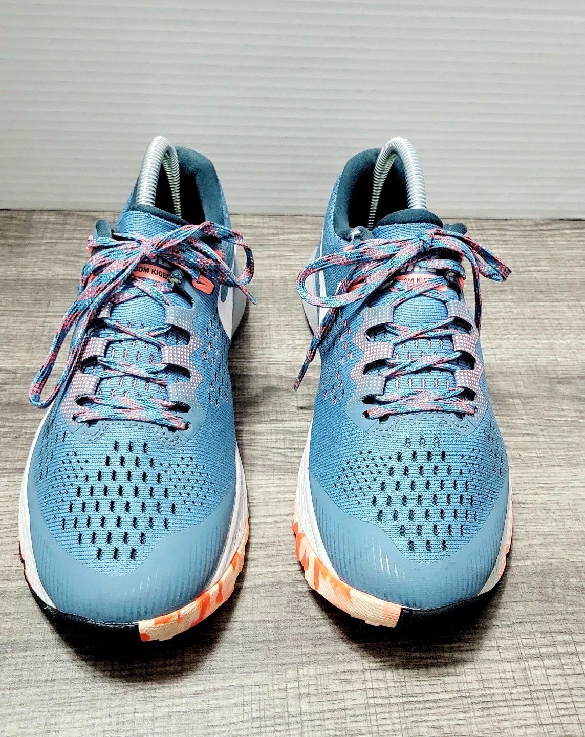 Selling a pair of Nike Air Zoom Kiger 4 running shoes in blue! They are a US size 8. Please note there is some visible wear and tear, as shown in the photos.