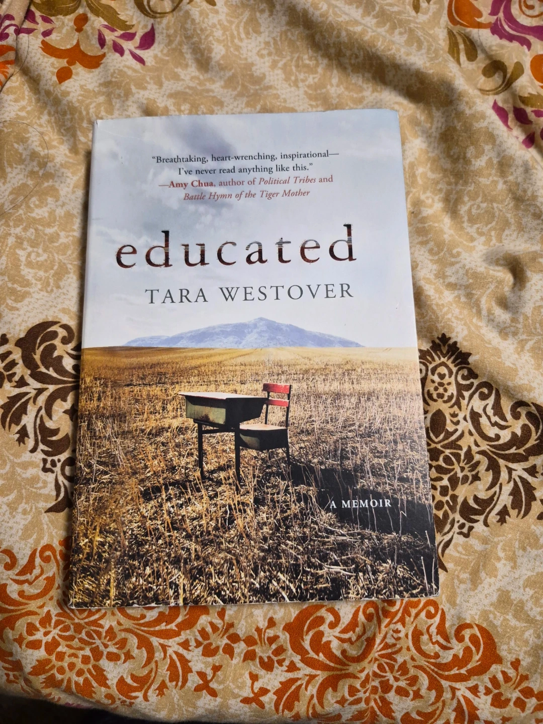 Selling a copy of "Educated" by Tara Westover. It's a memoir that has received high praise, described as 'breathtaking, heart-wrenching, and inspirational' by Amy Chua, author of Political Tribes and Battle Hymn of the Tiger Mother