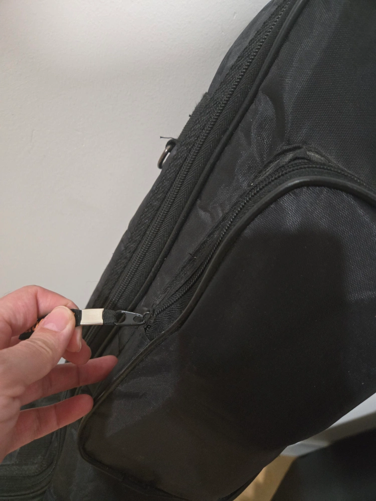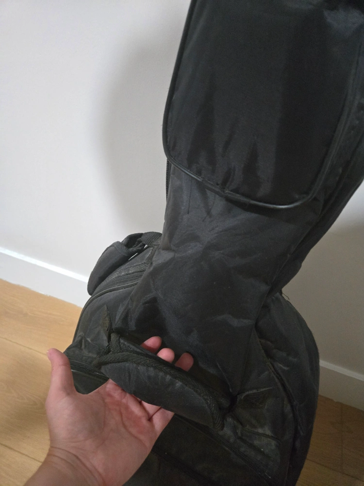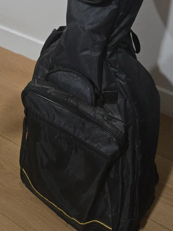 Selling a black guitar case. It's in good condition and ready to protect your instrument! Has a few pockets for accessories but some minor sewing on strap and pocket