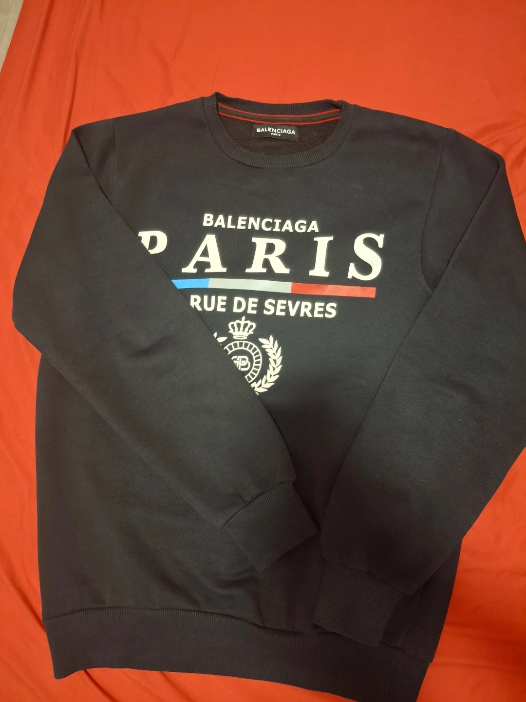 Selling a black Balenciaga sweatshirt with the 'PARIS 40 RUE DE SEVRES' design. It's in great condition