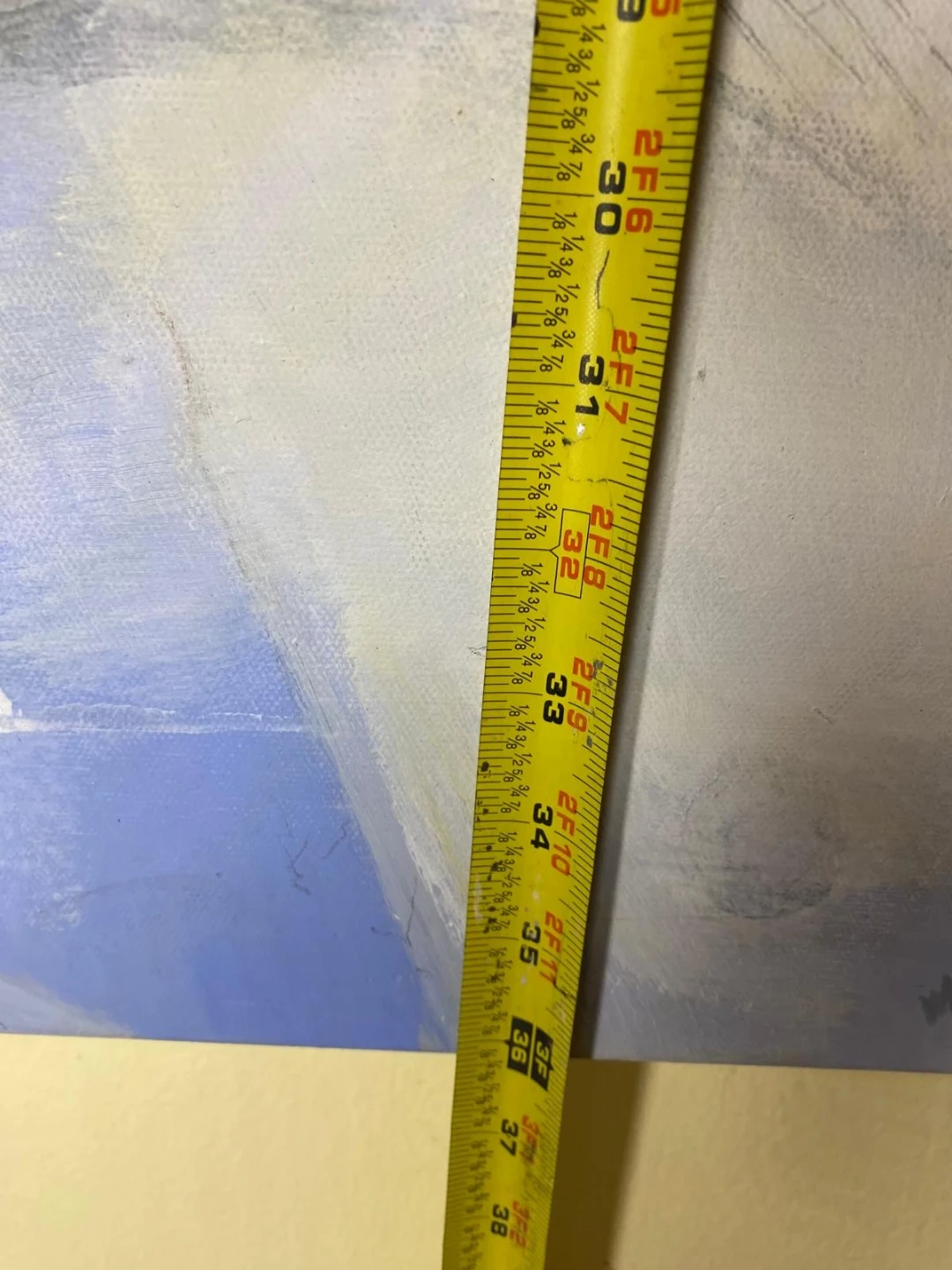 Selling an abstract art painting. It measures approximately 36x36 inches. The painting features a mix of blue, white, and gray tones and has an interesting abstract design. Perfect for adding a modern touch to your home!