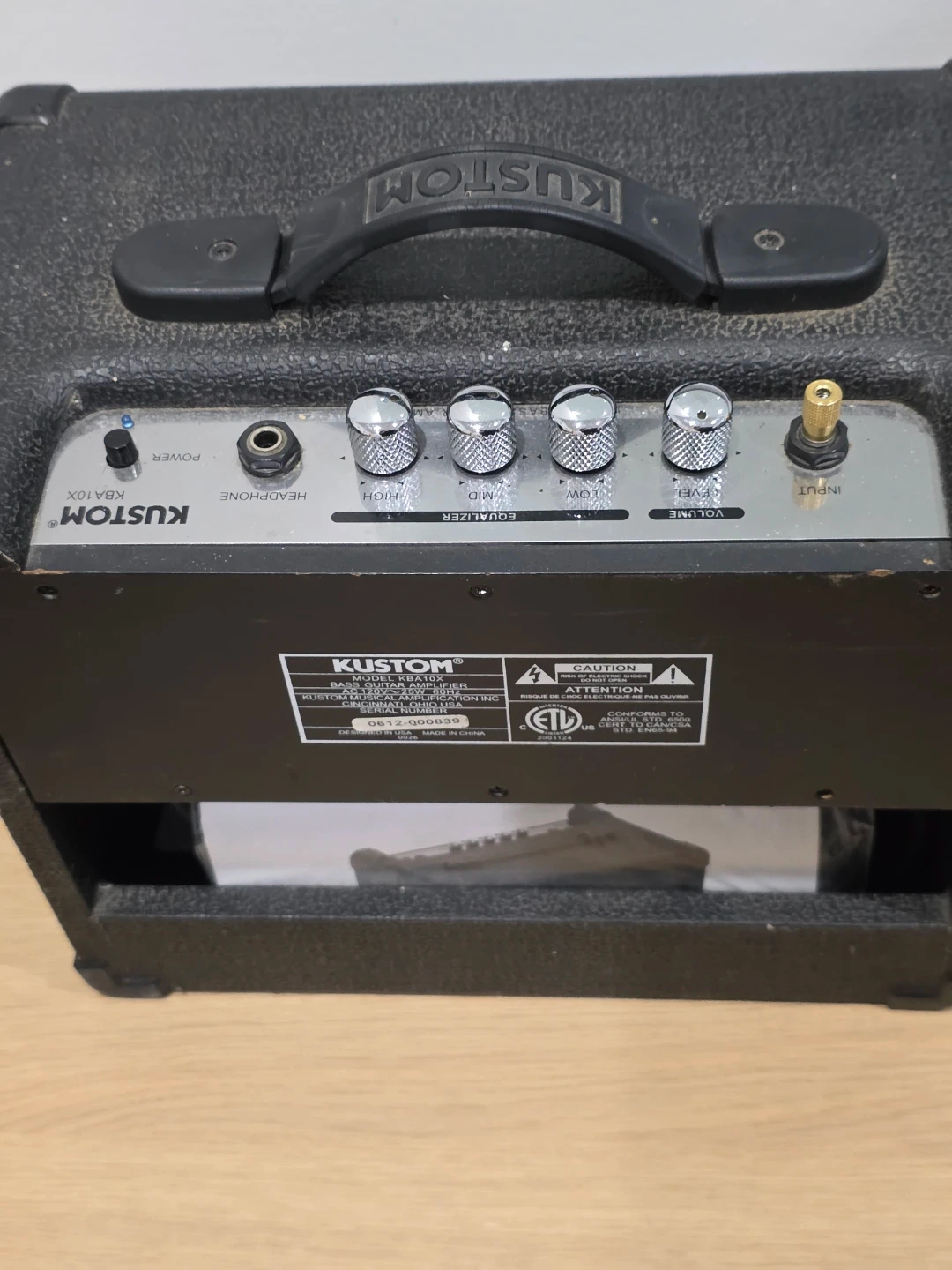 Selling a Kustom KBA10X bass amplifier! It has a headphone jack, volume control, and equalizer. Perfect for practicing at home or small gigs