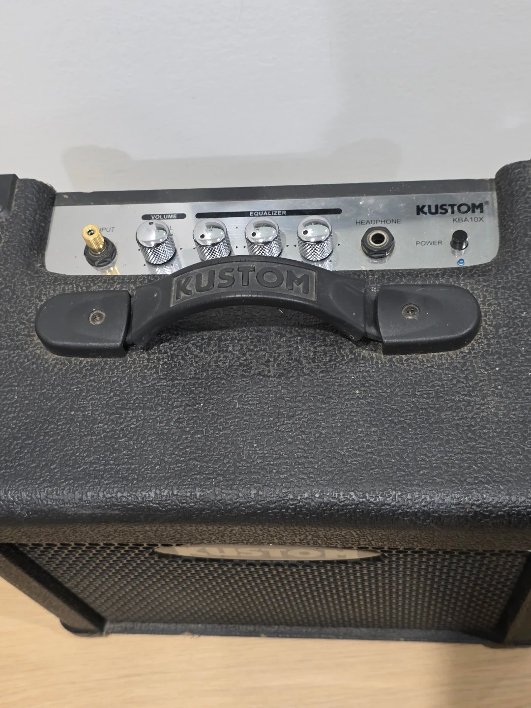 Selling a Kustom KBA10X bass amplifier! It has a headphone jack, volume control, and equalizer. Perfect for practicing at home or small gigs