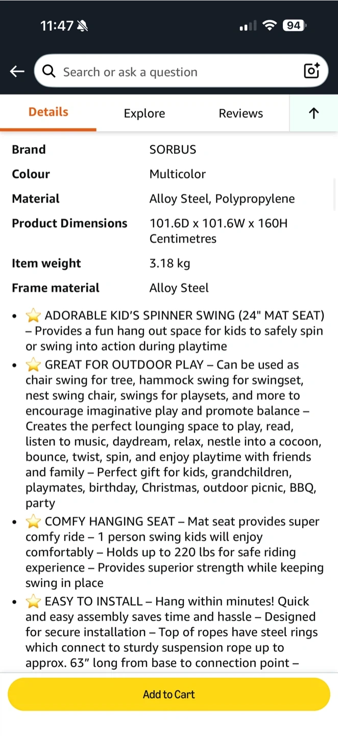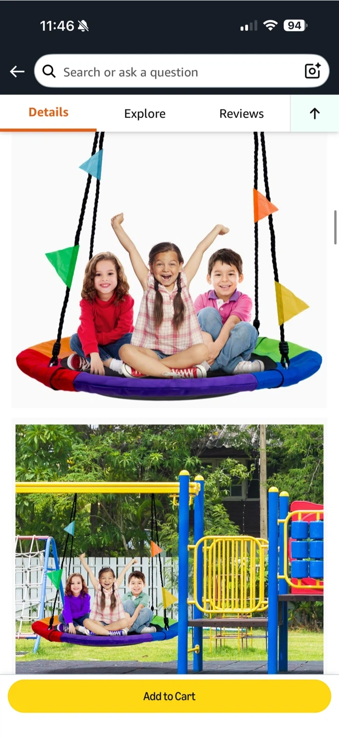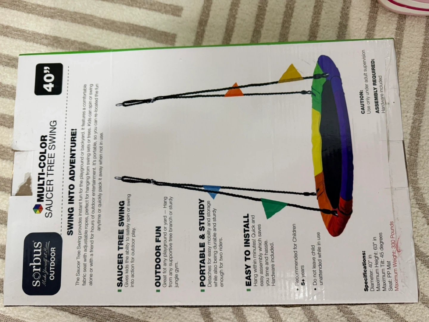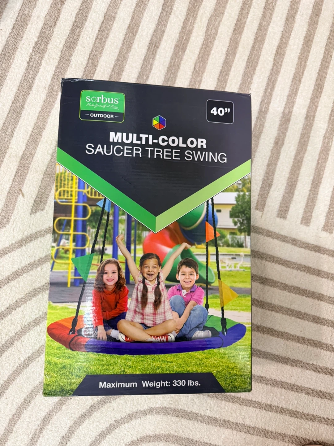 Bring fun and excitement to any backyard or playground with this SORBUS 40-inch multi-color saucer tree swing. Perfect for kids to swing, relax, and play together. Large round mat seat allows multiple kids to sit comfortably at the same time.