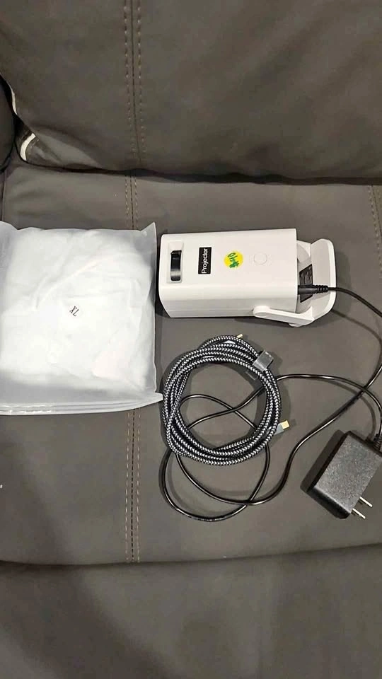 Mini HD projector with a 200 inch screen and hdmi cord the has the connector for your phone works great just moved and now dont have a place to use it worth $160+tax projector was 90 screen was 40 and cord was 30 asking 40