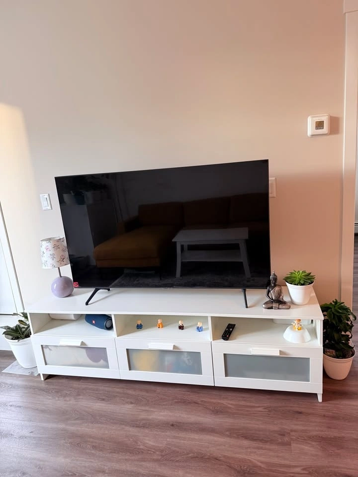 BRIMNES TV bench/ stand, white, like new and sturdy. Selling due to relocation.