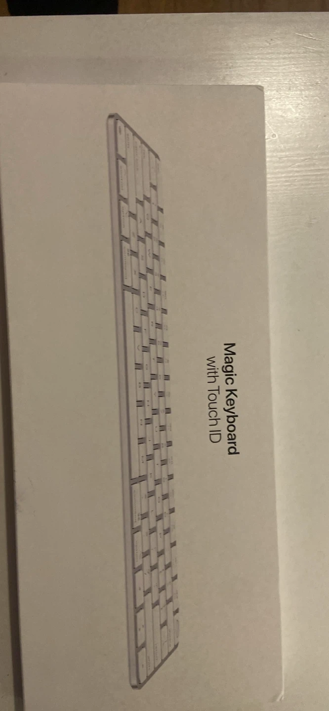Selling an Apple Magic Keyboard with Touch ID! It's in like-new condition and comes with the original box. This keyboard is super sleek and makes typing a breeze. Perfect for anyone looking to upgrade their setup!