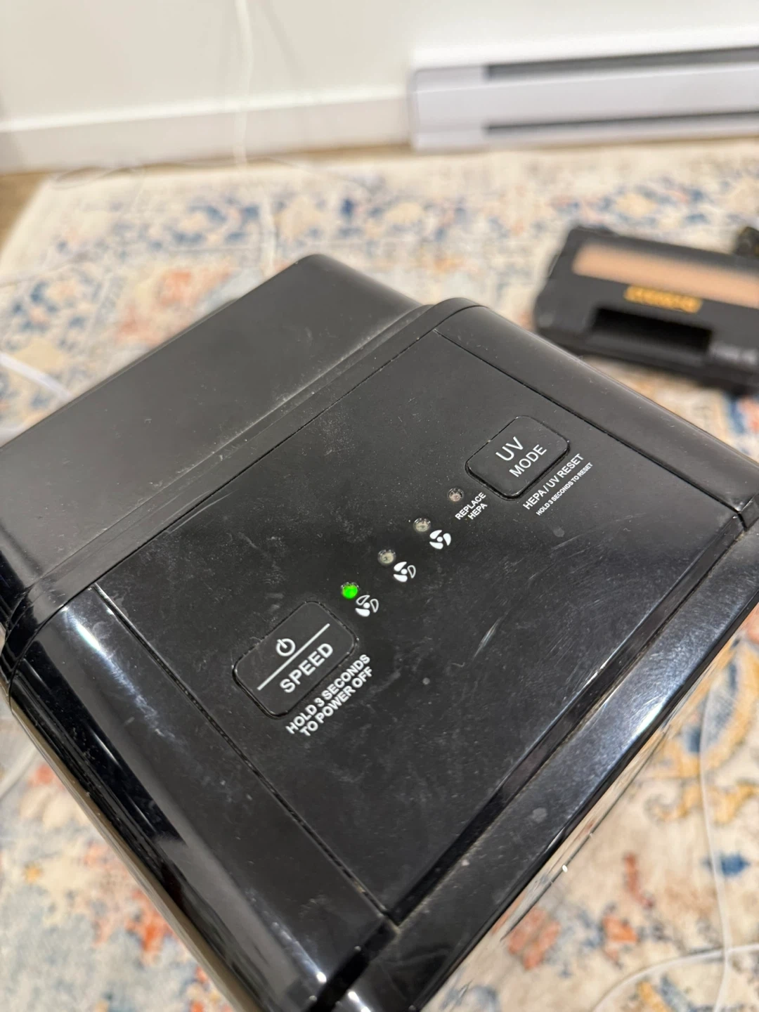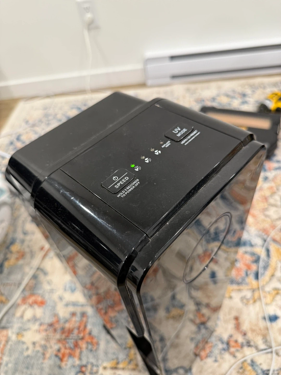 Selling a GermGuardian air purifier, model AC4300BPTCA. It's suitable for dry indoor locations only and certified for shock and electrical fire hazard only. It uses a 120V ac 60Hz 0.5A 55W lamp, LB4000 (UV-C) 5W.