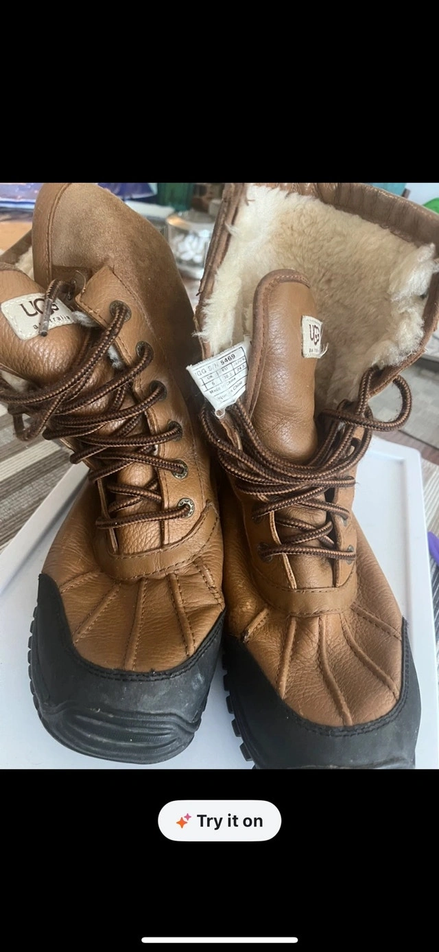 These are a pair of Ugg boots, designed to withstand the elements while keeping you warm and cozy. These boots have been gently used and are in great shape for all your outdoor adventures. I would be thrilled if they found a new home. If the ad's still up, the boots are still kickin' around!