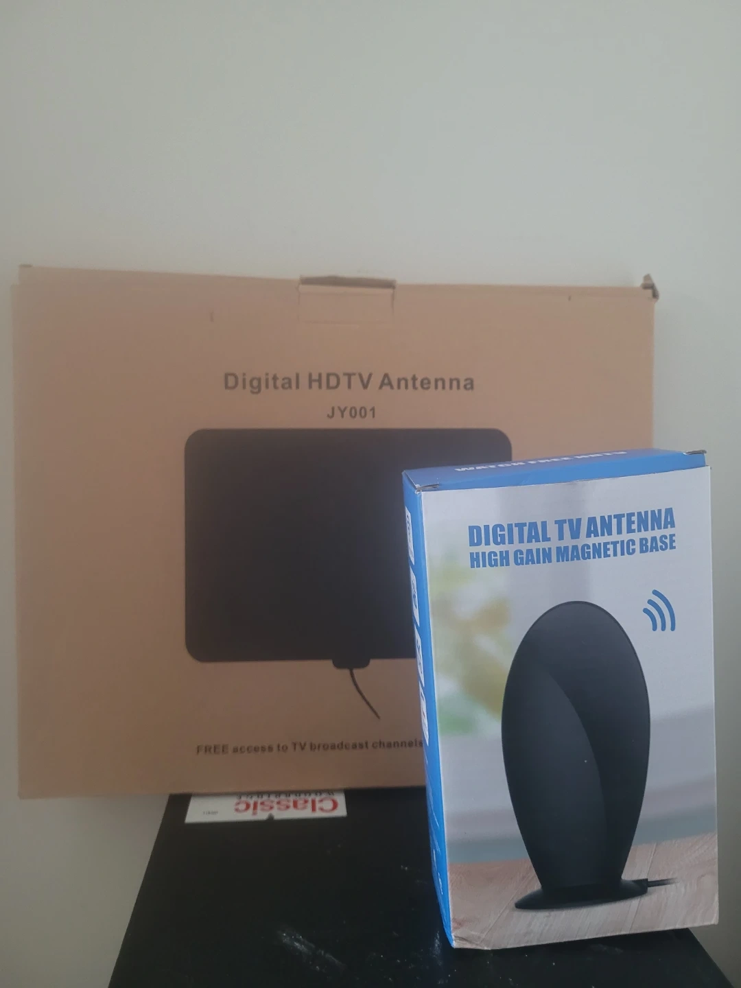 Selling a digital HDTV antenna! It's a new generation flat design indoor TV antenna with only 0.02 inch thickness. It comes with a sticker at the base for convenient multi-positioning such as windows, tables, walls, etc. Attached high quality coaxial cable to make it easy to position the antenna and find the optimal TV signal reception. It's specially compatible with HDTV of various digital terrestrial (DVB-T.ISDB-T.DMB-T/H, ATSC) and DAB/FM radios. It has a strong signal, full HD, 4K UHD, and magnetic attraction. The type is indoor, product size is 75*50*170mm, and frequency is VHF174-230MHz\UHF470-862MHz