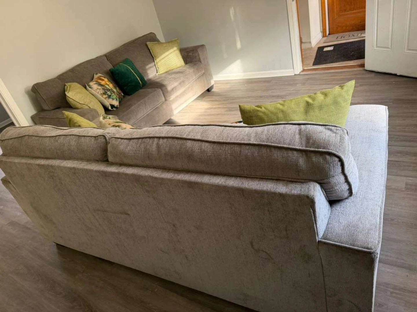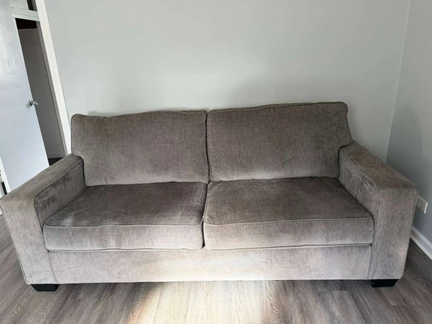 Selling a comfortable gray two-seat sofa! It's in good condition and ready for a new home. Perfect for a living room