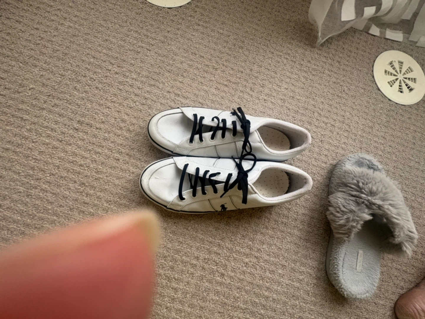 Selling a pair of Polo Ralph Lauren sneakers in white leather. They're a US size 10 and in good condition. Perfect for casual wear!