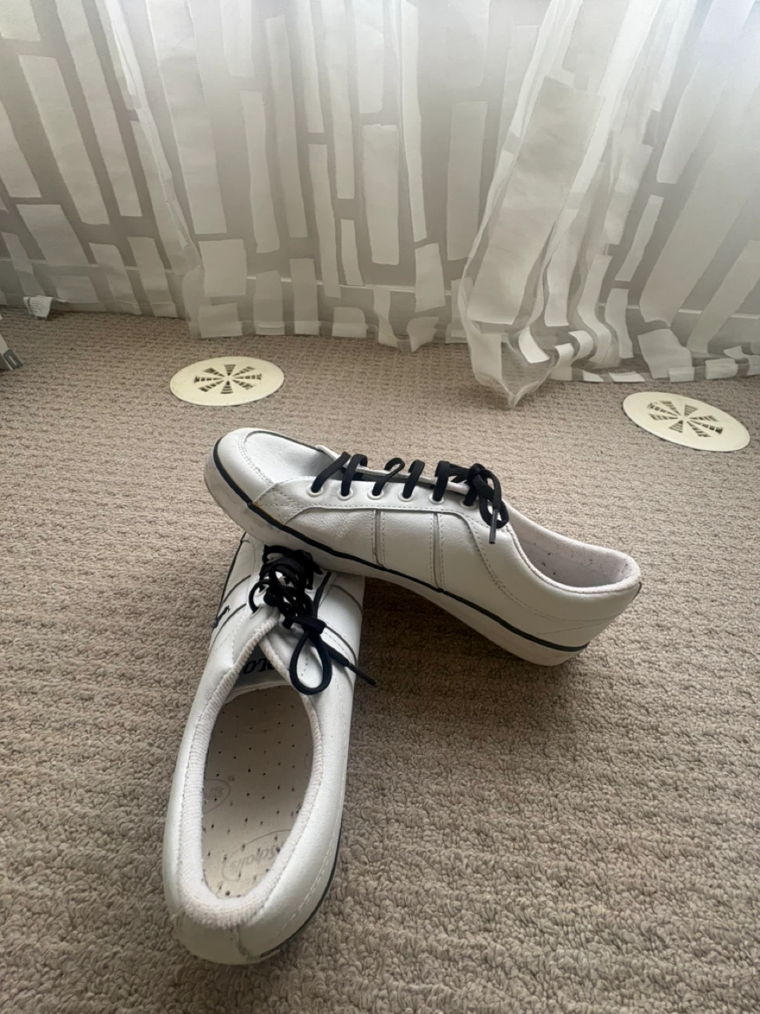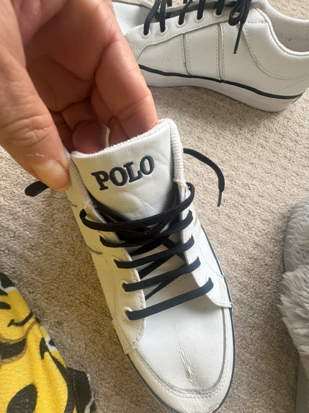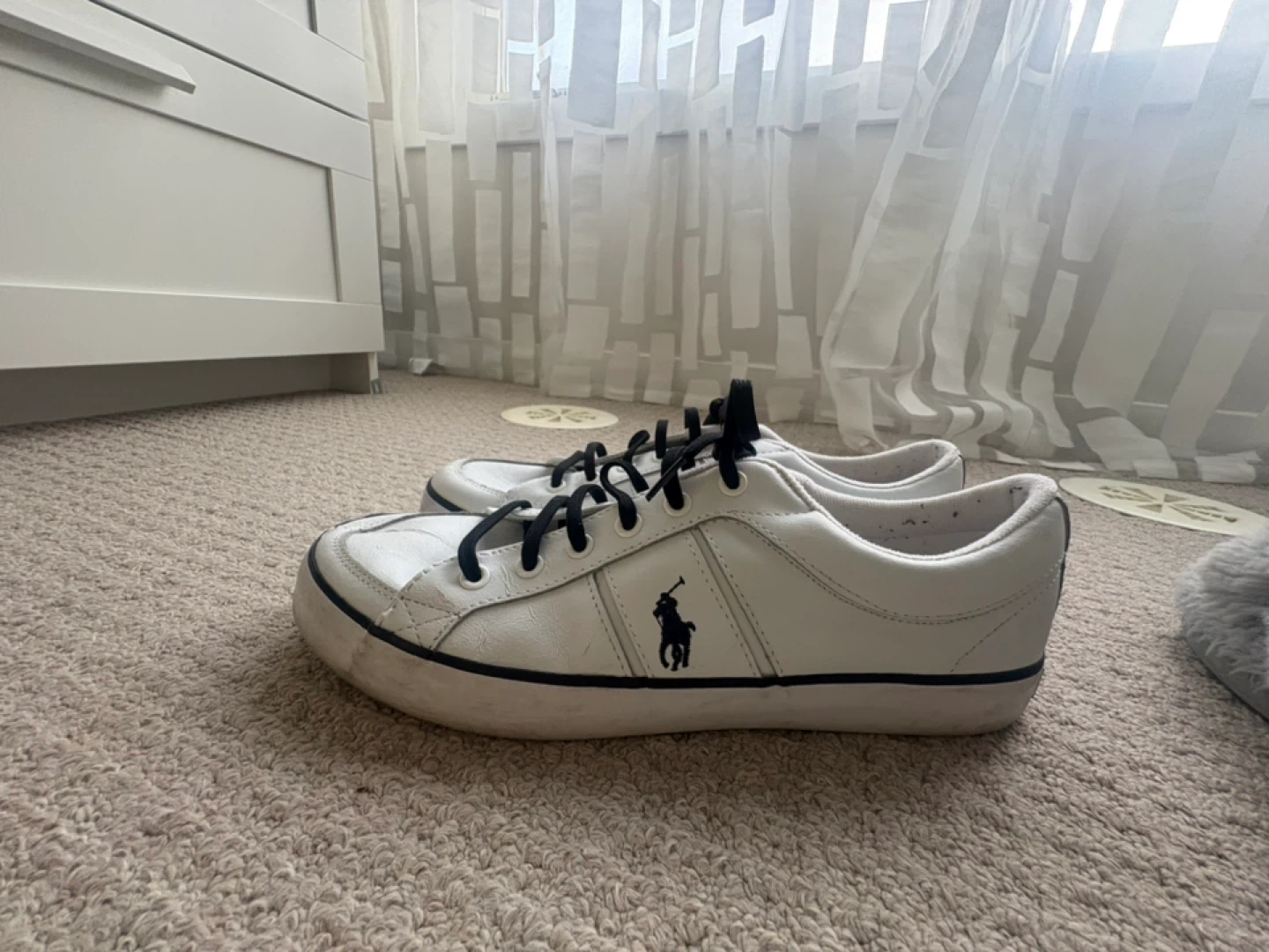 Selling a pair of Polo Ralph Lauren sneakers in white leather. They're a US size 10 and in good condition. Perfect for casual wear!