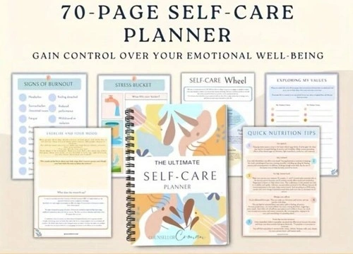 A bright and uplifting wellness planner focused entirely on self-love and mental health. Features include: