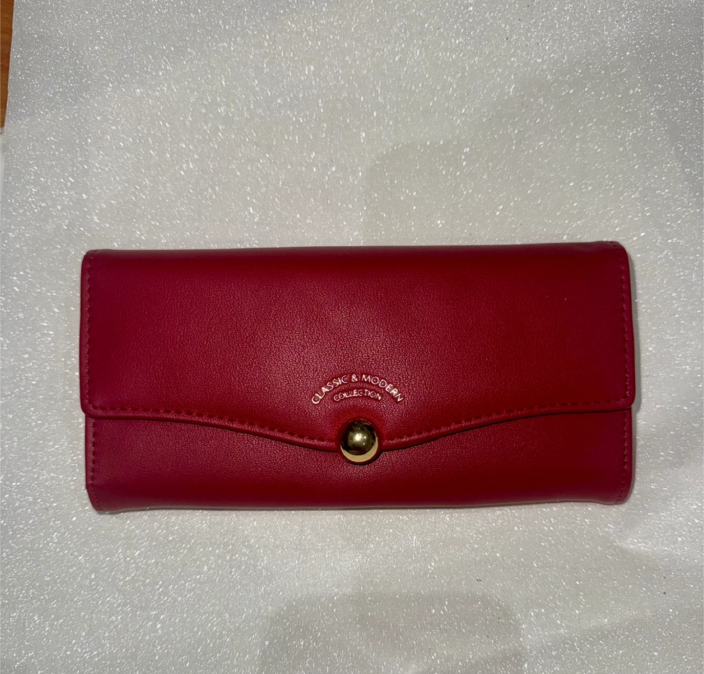 Selling a red wallet from the Classic & Modern Collection. It features a gold-tone button closure and a sleek design. Perfect for keeping your essentials organized!