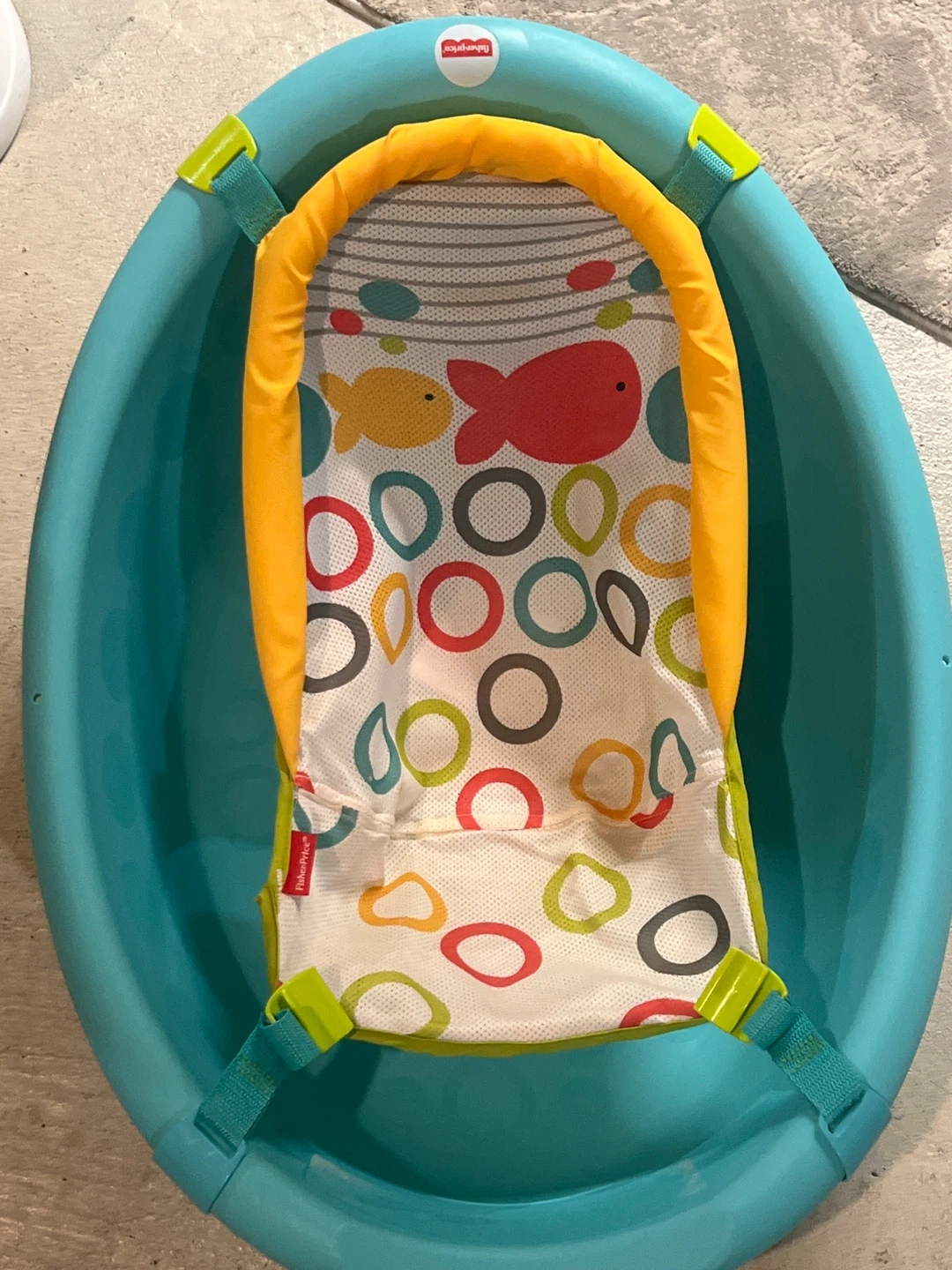 Selling a Fisher-Price baby bathtub with a sling insert! It's in great condition and ready for your little one. The sling is designed with cute fish and colourful circles