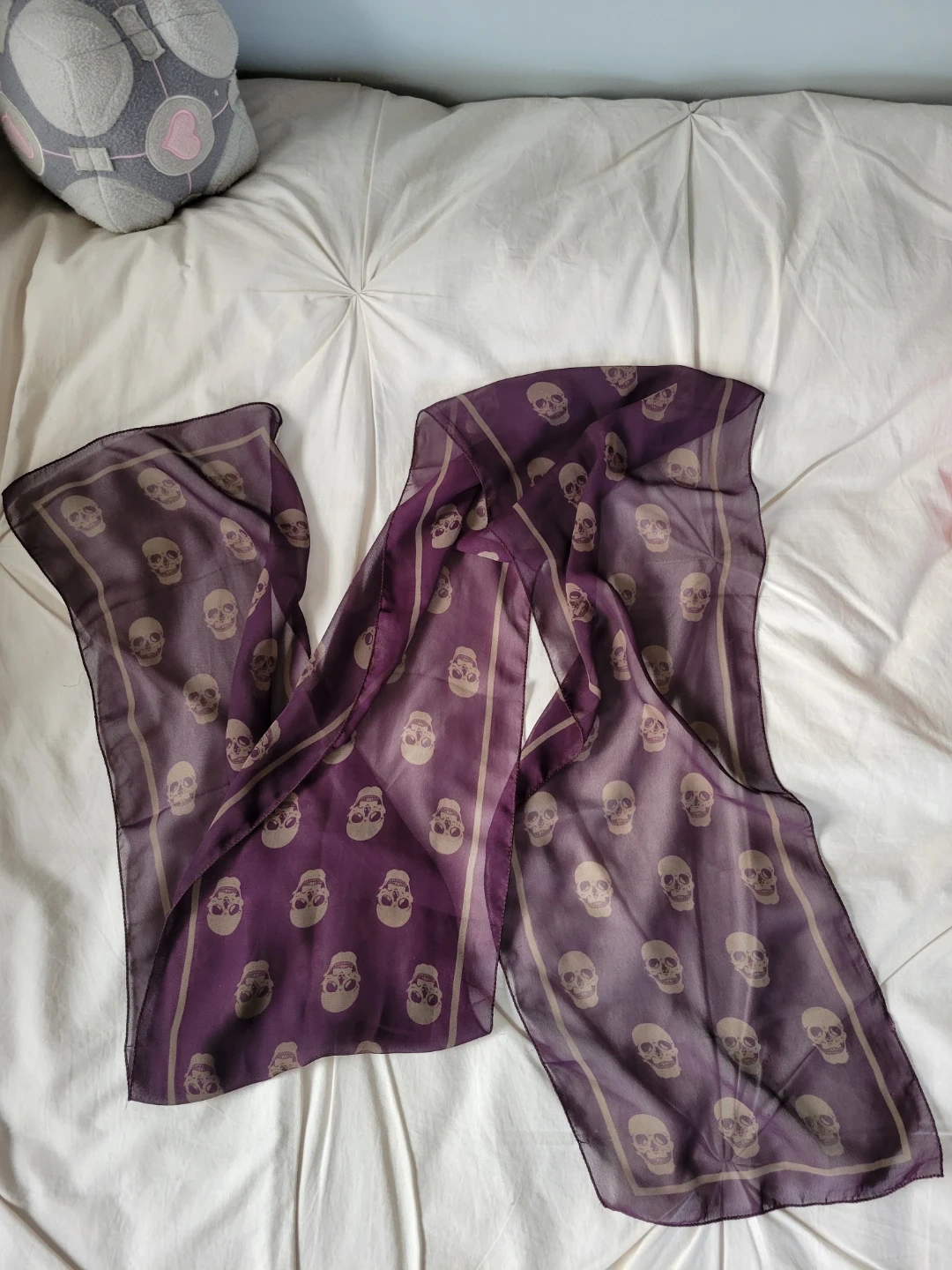 1. Purple skull scarf. Imitation Alexander McQueen, not real! Sheer material. $5