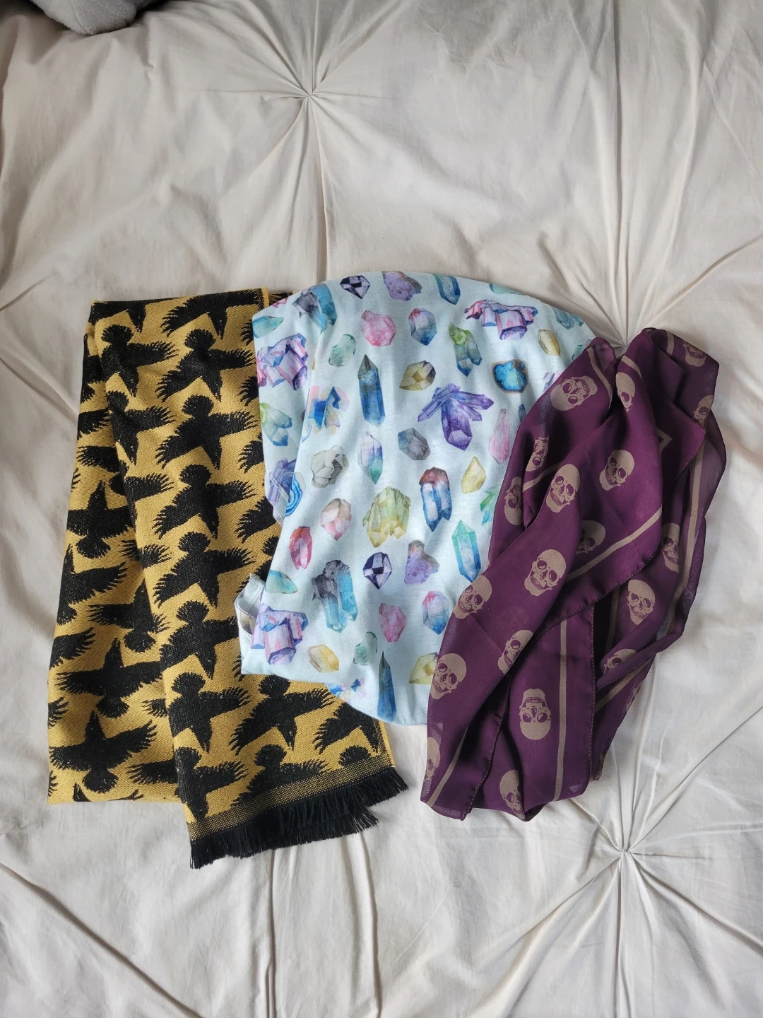 A trio of scarves that haven't been worn: