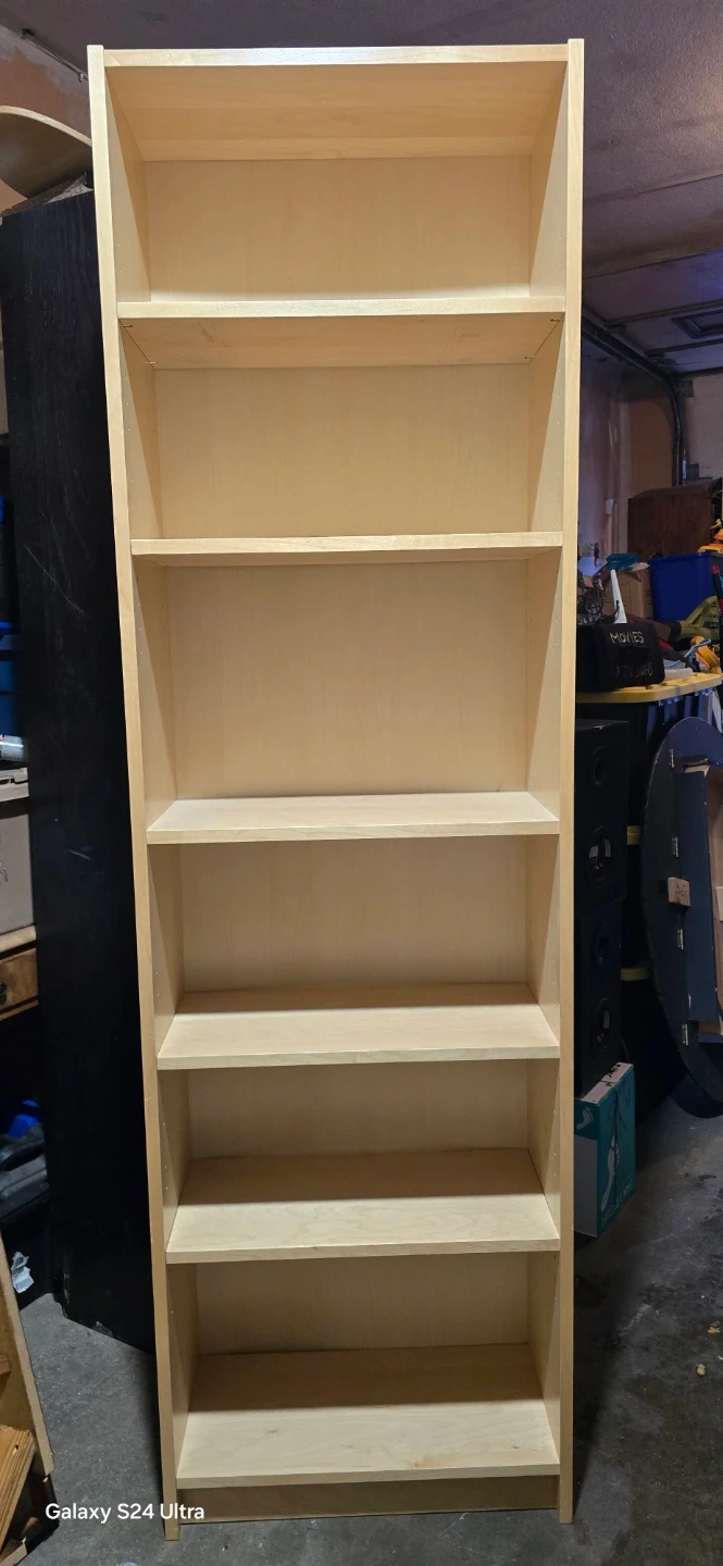 This is a used bookcase featuring seven shelves, perfect for ample storage and display in any room.
