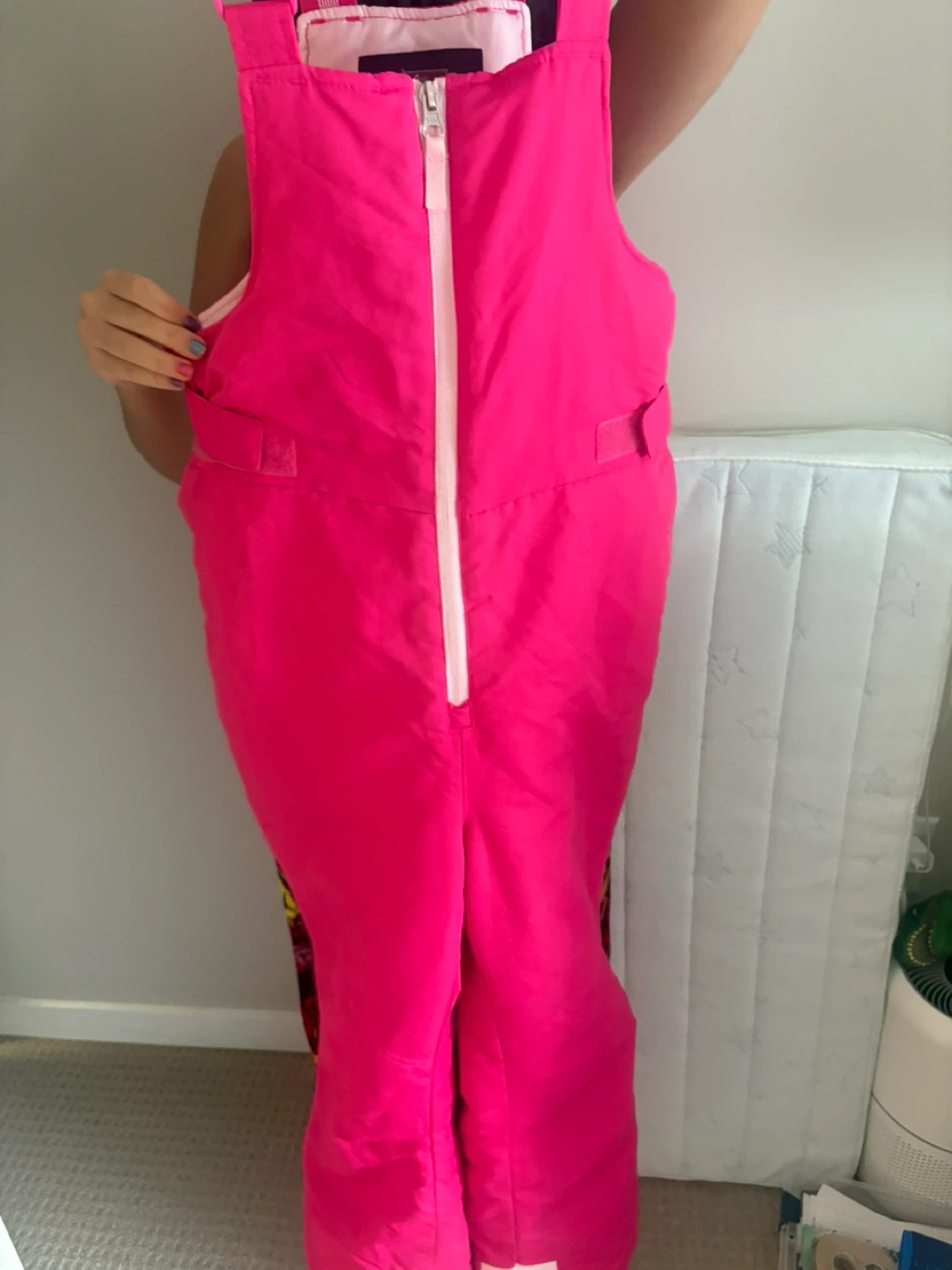 Selling a pair of kids' snow bibs in black. Great for keeping your little one warm and dry during winter activities. Available in black, purple and pink.