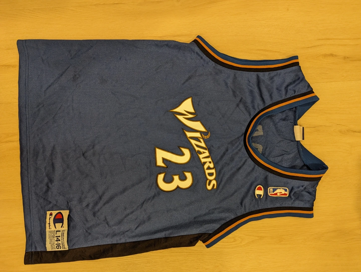 Selling a Champion NBA Wizards jersey with Jordan's number 23 on it. It's a size L (14/16). The jersey is in great condition and ready for a new fan!