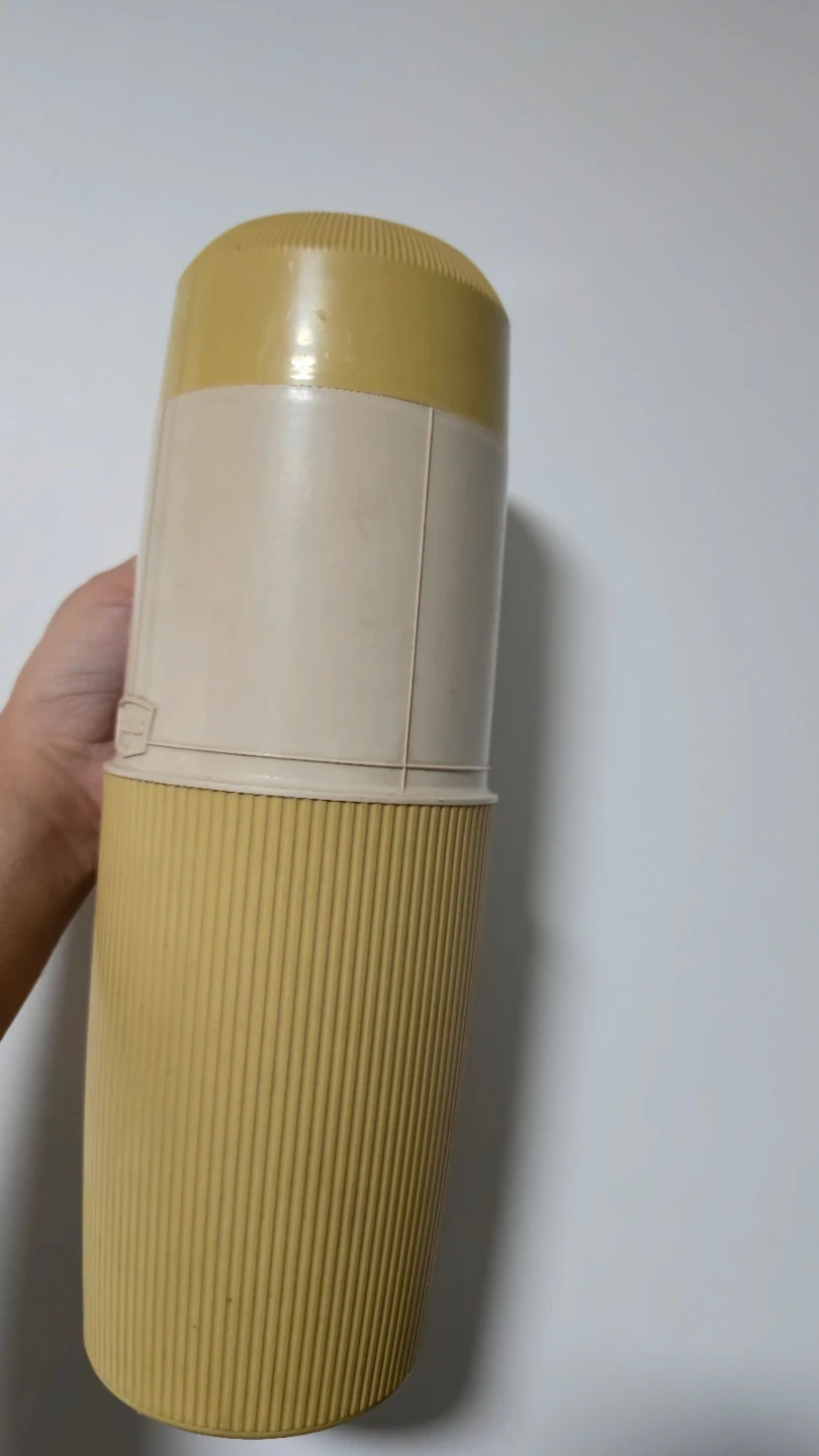 Selling a vintage Thermos bottle in beige and brown. It's in good condition and perfect for keeping your drinks hot or cold. Great for picnics, camping, or just everyday use!