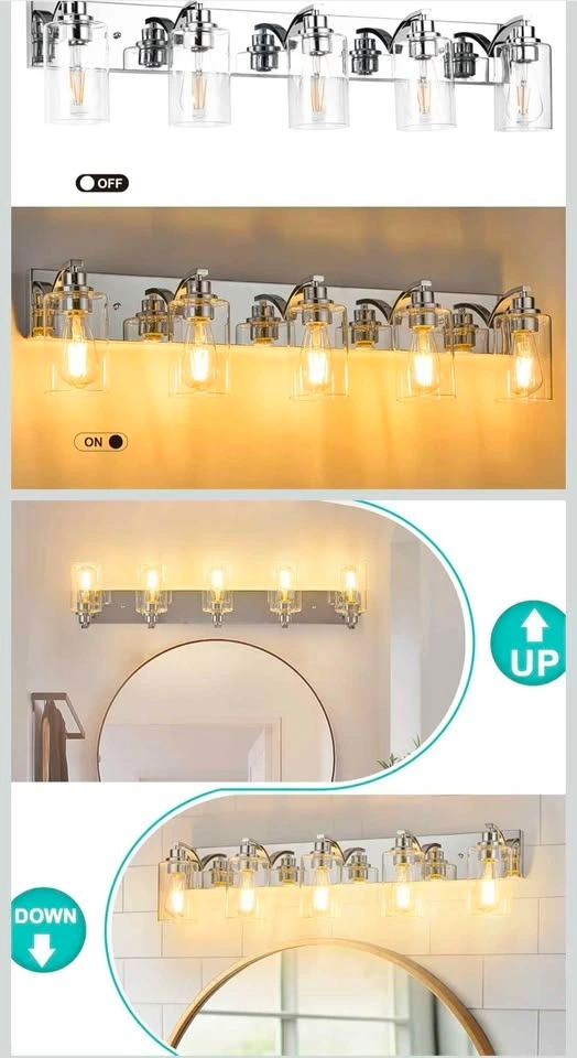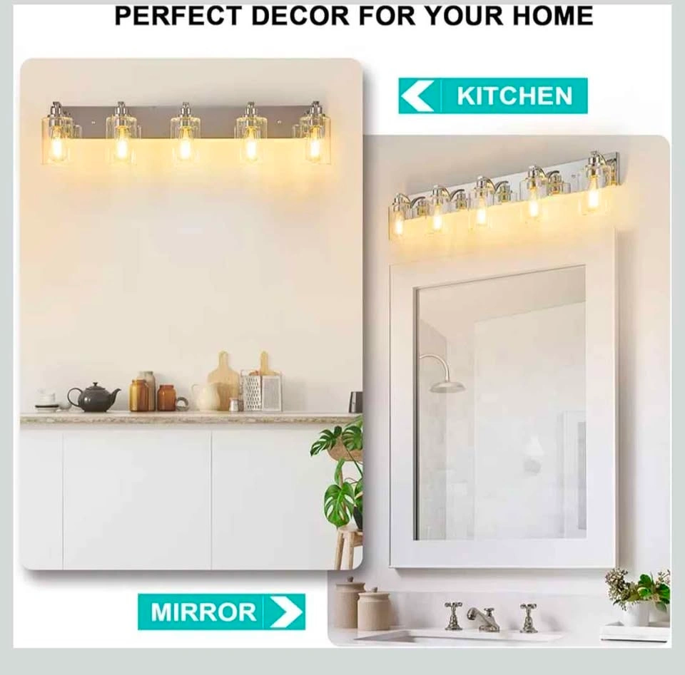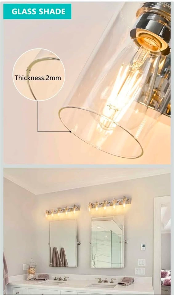 Bathroom light fixtures is made of sturdy solid metal, with high-quality transparent thickness glass lampshade, without getting oxidation and color fading,our bathroom vanity lights will illuminate in your bathroom.