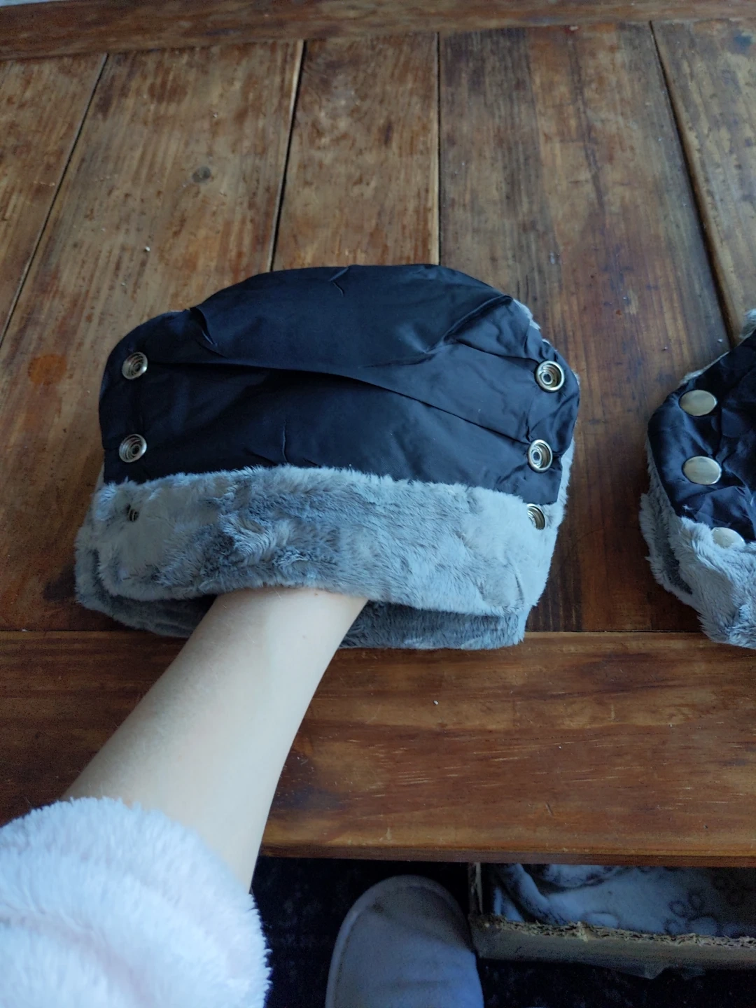 Keep your hands warm while pushing the stroller with these cozy winter mittens! They attach to the stroller handle and have a soft, furry lining to keep you toasty on cold days. Good as a baby gift.
