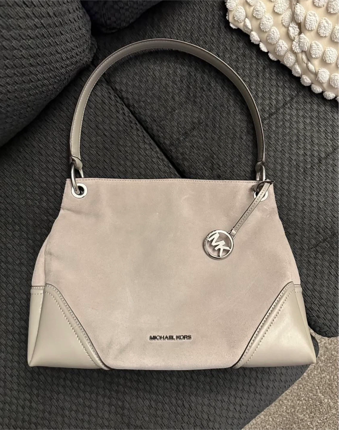 Buy & SellMichael Kors Grey Leather Shoulder BagMichael Kors Grey Leather Shoulder Bag$32Selling a Michael Kors shoulder bag in a grey suede. Perfect for everyday use or a night outConditionGoodBrandMichael KorsWHERE TO MEETCheck LocationView MapSELLERBrandiesavanna150 reviews1 chats·0 favorites·43 viewsSEND CHAT TO SELLERHi Brandie! I’m interested in your listing.Hi Brandie! I’m interested in your listing.Get the Karrot app to chatSign In to chat