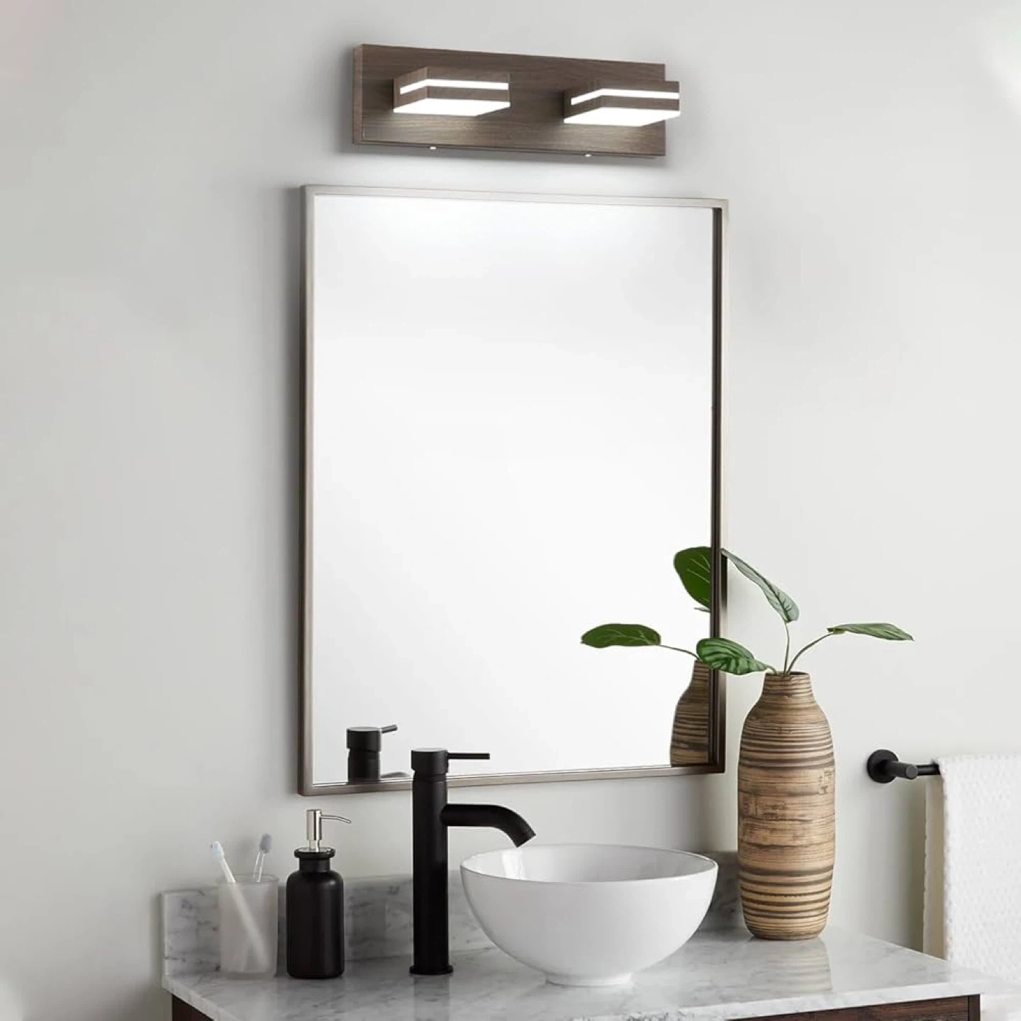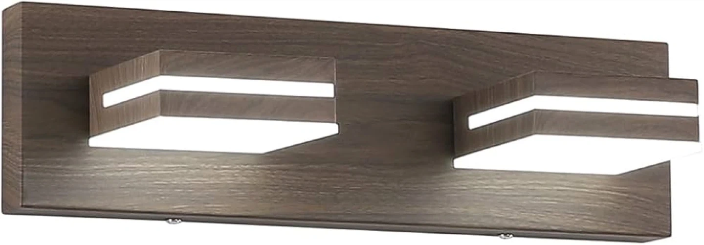 (2-Light, 15.5-Inch, Dimmable), Brown Wood Painted Modern Acrylic Bathroom Wall Lighting Fixtures Over Mirror (Cool White 6000K)