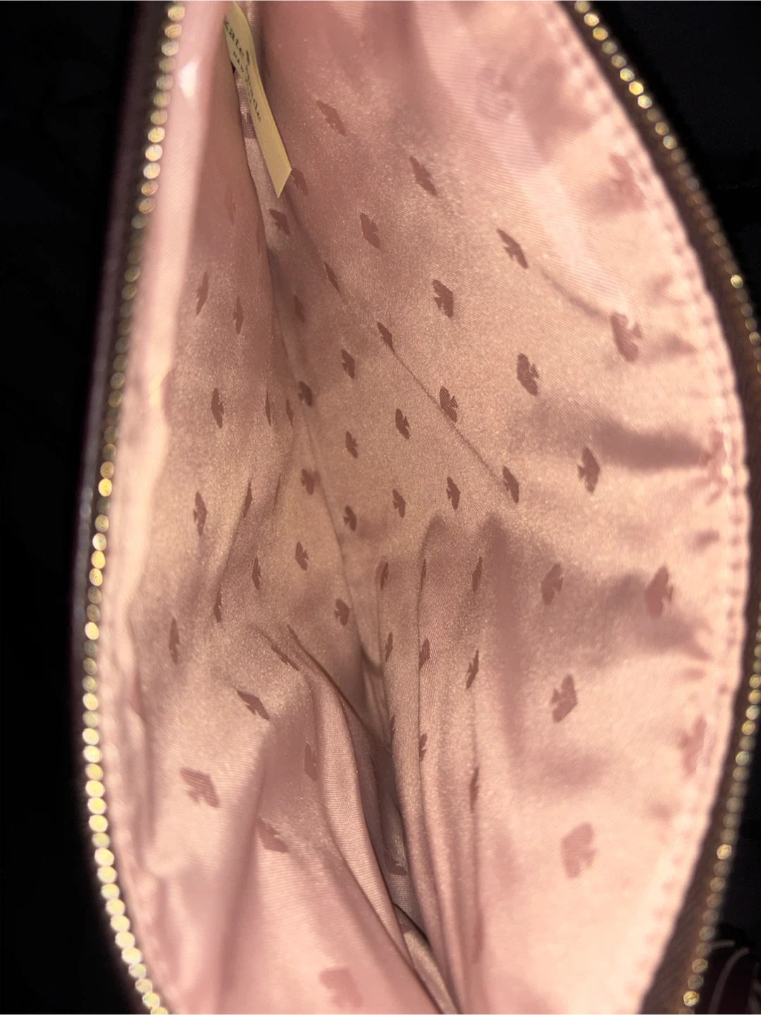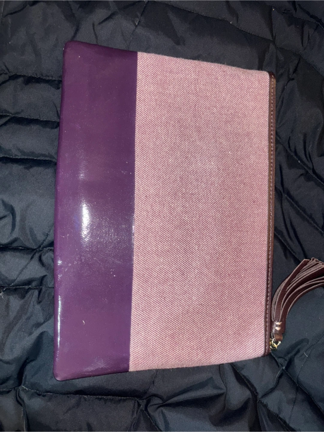 Selling a Kate Spade pouch in a lovely purple colour! It's in great condition and perfect for carrying your essentials. The interior has a cute pattern with the Kate Spade logo. It's a stylish and practical accessory