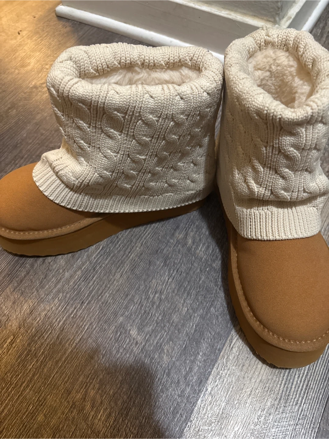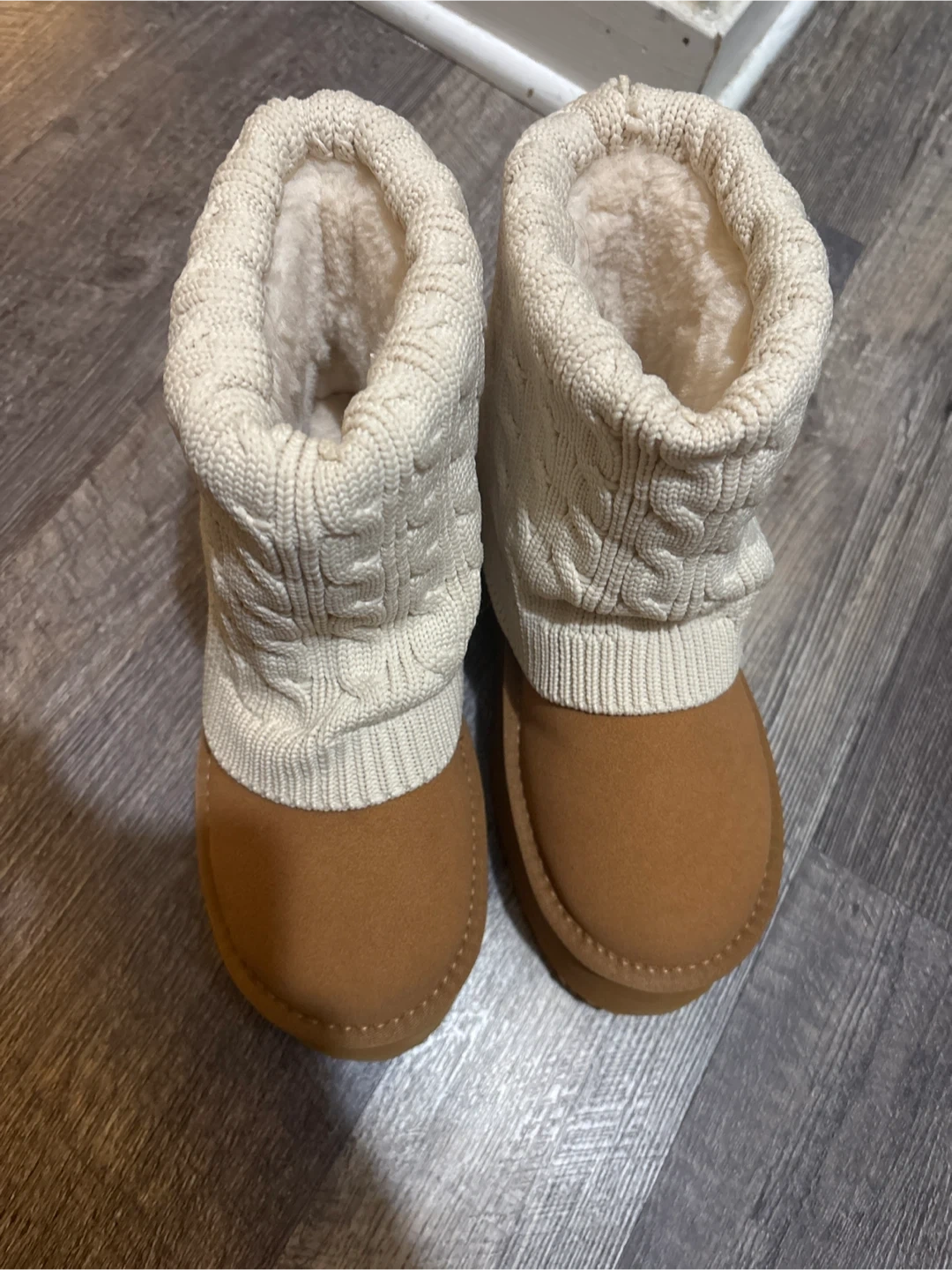 Cozy UGG boots with a knit cuff! They're in great condition and perfect for keeping your feet warm and stylish. The size is a US 6.