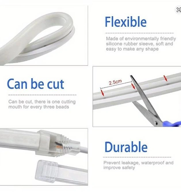 • Flexible Design&Cuttable: High quality silicone, freely curved, soft and flexible. Free to cut length. Easily bend or shape to fit any surface. Adds a unique and eye-catching touch to any room.