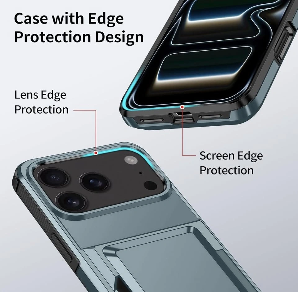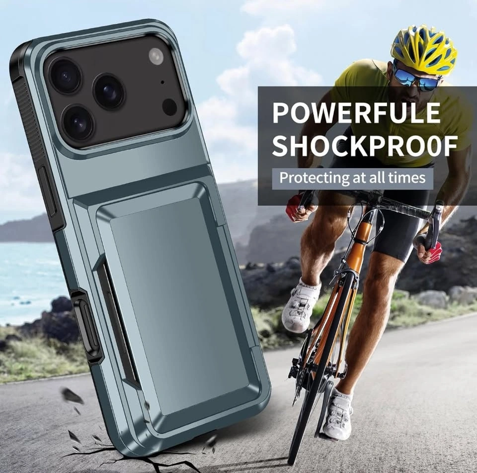 iPhone 17 Pro Max Case with Card Holder [Max 5 Cards][Hidden Card Slot ] Dual Layer Heavy Duty Phone Protective Cover Wallet Case for iPhone 17 Pro Max 6.9''