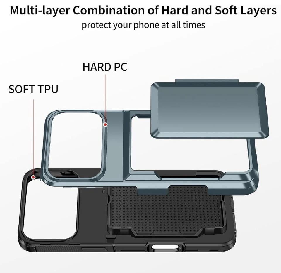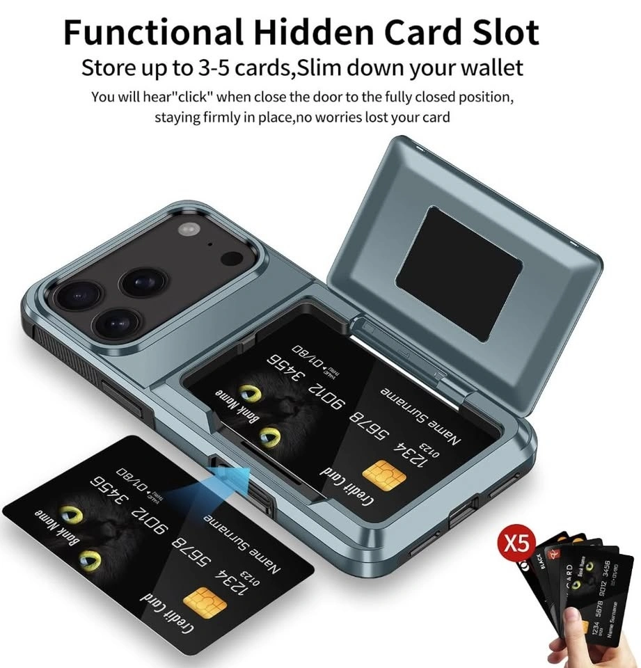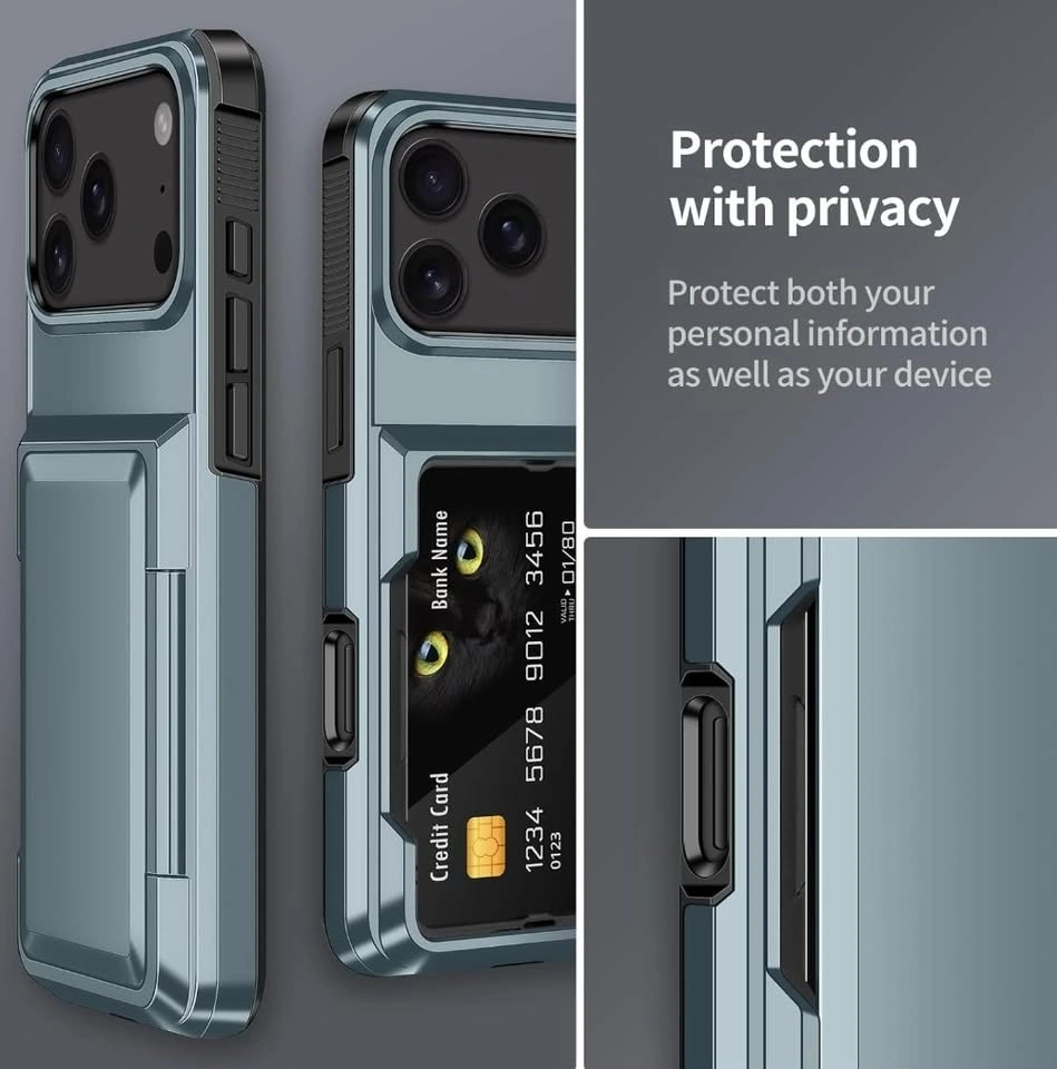 iPhone 17 Pro Max Case with Card Holder [Max 5 Cards][Hidden Card Slot ] Dual Layer Heavy Duty Phone Protective Cover Wallet Case for iPhone 17 Pro Max 6.9''