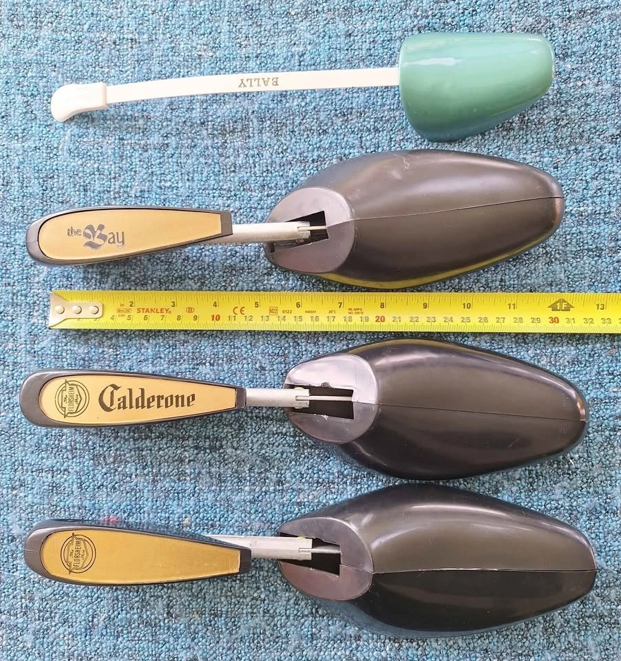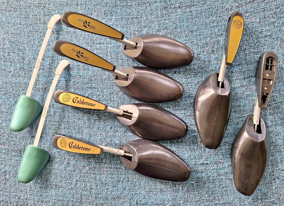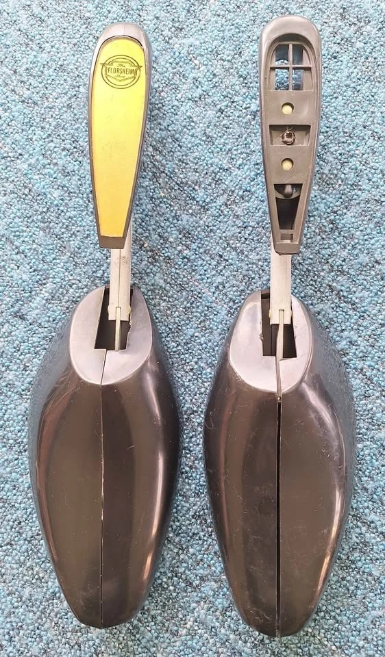 Selling 4 pairs of plastic shoe inserts / stretchers. 1 of the Florsheims is missing the gold foil cover otherwise all are in good vintage condition. Were used in size 8 & 9 men's dress shoes to hold shape.
