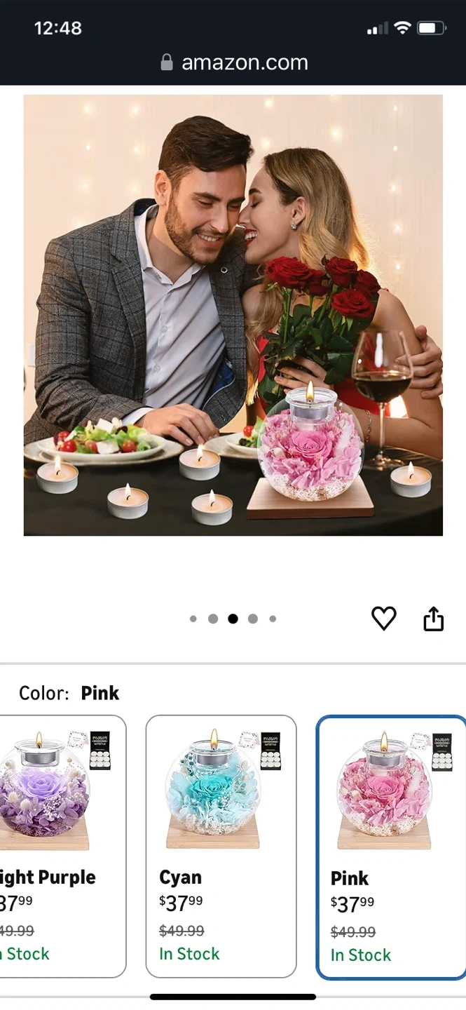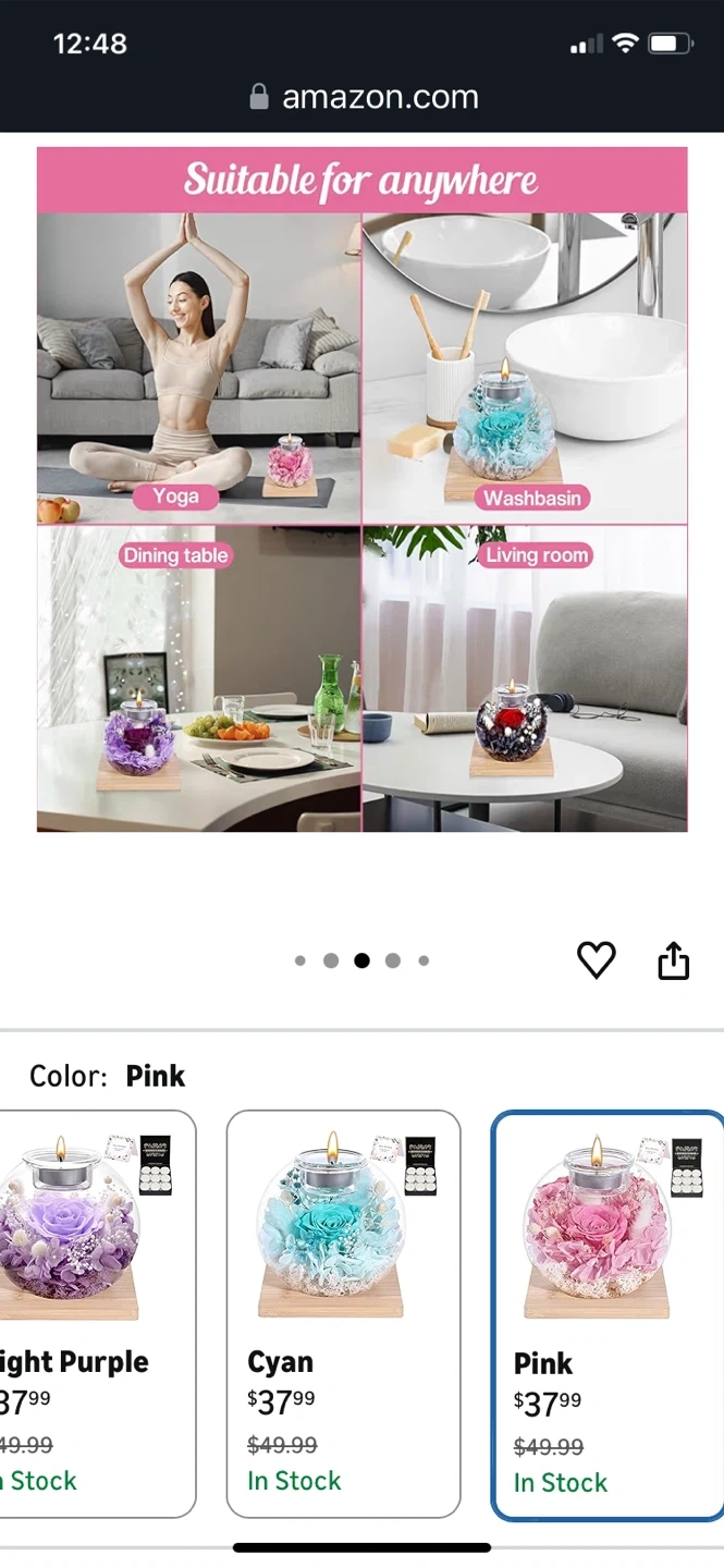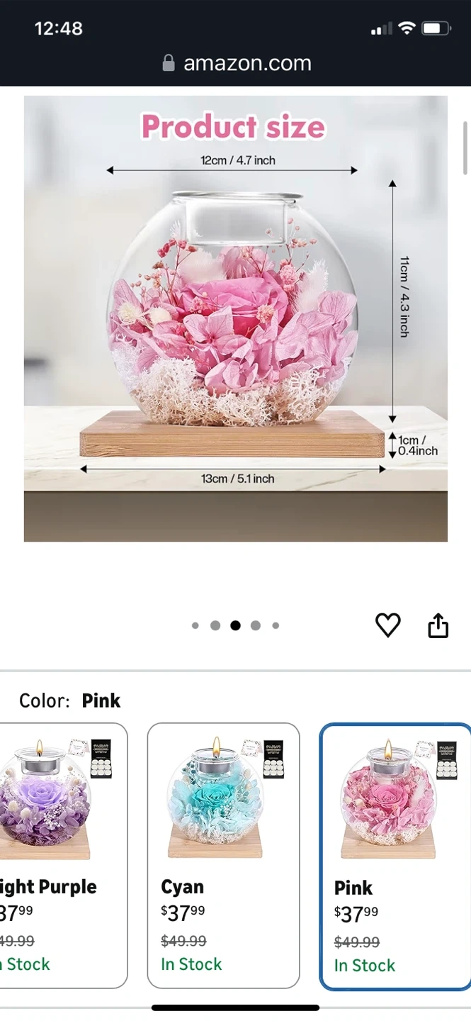 Theeternal rose and scented candles. Roses in Glass Dome with Scented - Romantic Preserved Flower for Women, Girlfriend, Wife, Mom, Grandma, Sister, Her-Pink. It is suitable for anywhere. Product size is 12cm / 4.7 inch width and 11cm / 4.3 inch height. Listed price: $37.99