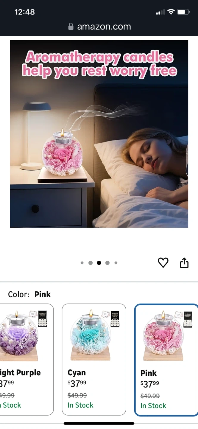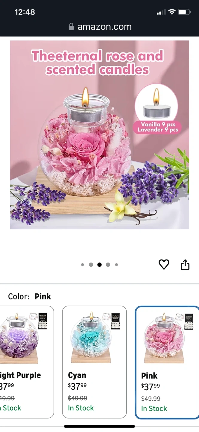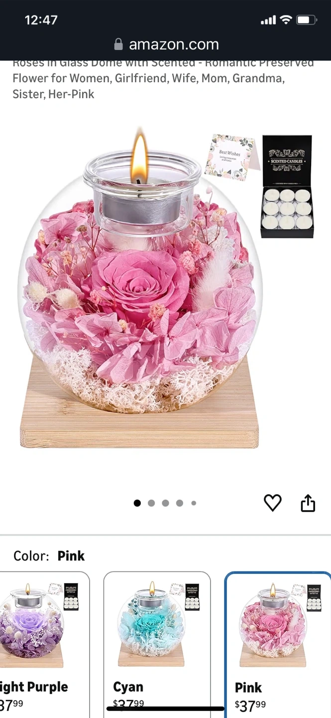 Theeternal rose and scented candles. Roses in Glass Dome with Scented - Romantic Preserved Flower for Women, Girlfriend, Wife, Mom, Grandma, Sister, Her-Pink. It is suitable for anywhere. Product size is 12cm / 4.7 inch width and 11cm / 4.3 inch height. Listed price: $37.99