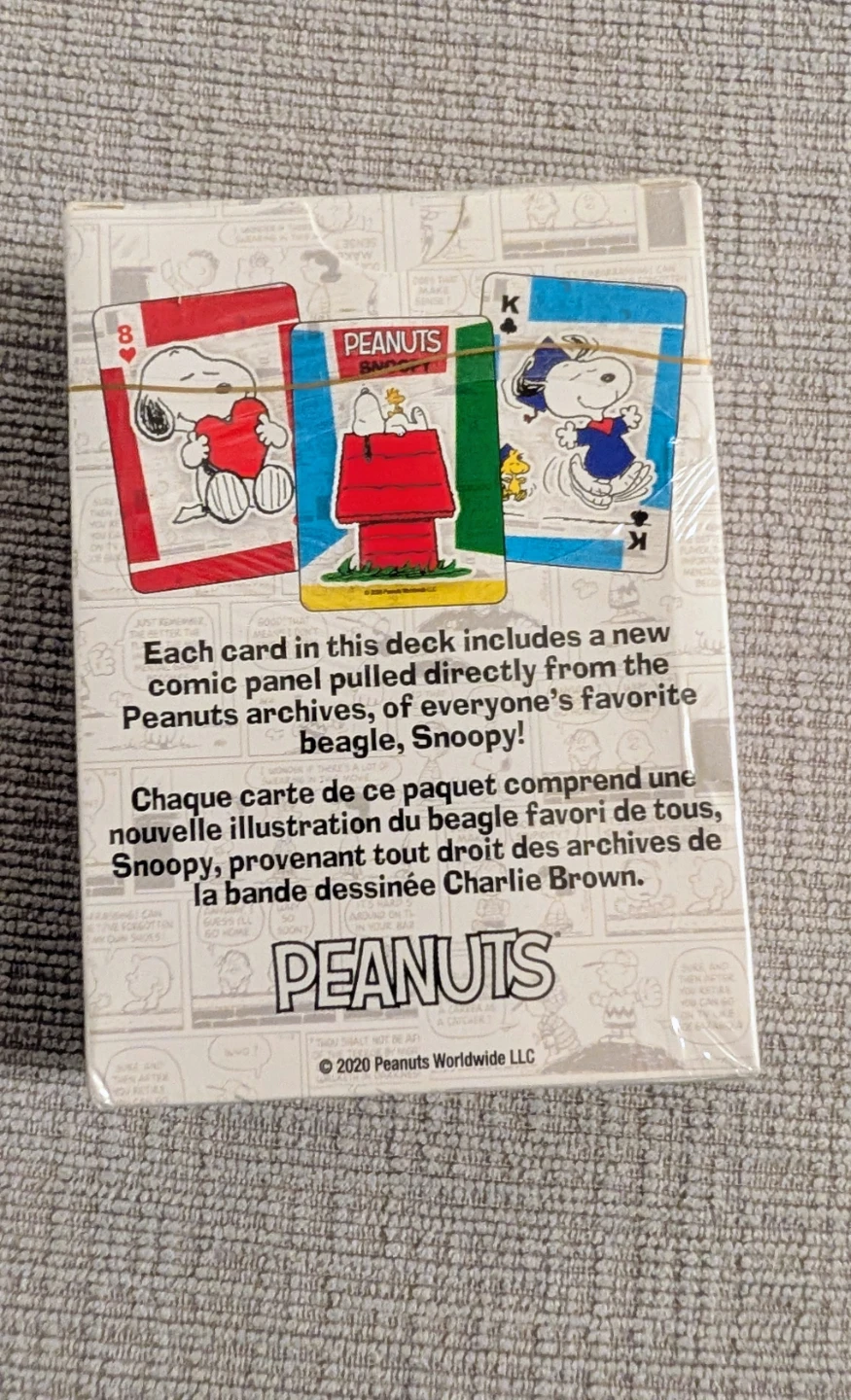 Brand new, sealed deck of Peanuts Snoopy playing cards! Each card features a unique comic panel pulled directly from the Peanuts archives. A fun addition for any Snoopy fan!