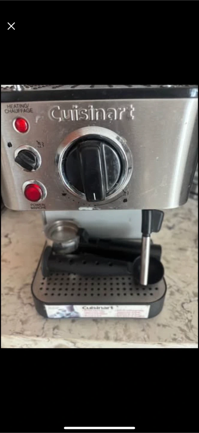 Selling a Cuisinart espresso machine in excellent condition! It has dimensions of 12 inches (30.5 cm) in height, 9.25 inches (23.5 cm) in width, and 11.2 inches (28.5 cm) in depth