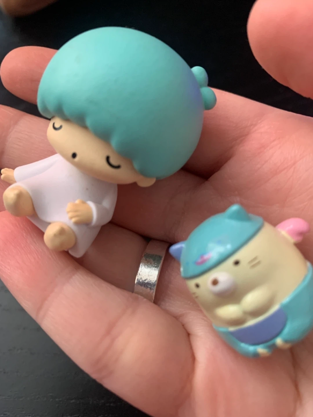 Two cute figures for sale! One is a Little Twin Stars figure with light blue hair, and the other is a Sumikko Gurashi figure. They're both in great condition and ready to brighten up your space