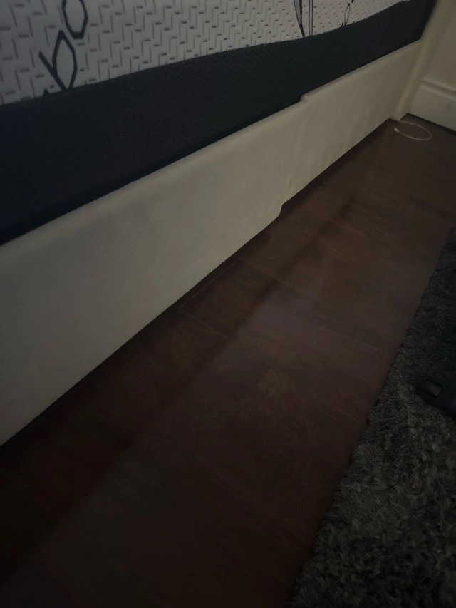 This full size bed is perfect for a guest room or smaller bedroom. It features a modern design with a wingback headboard. The bed is in good condition and has been gently used. Selling the mattress too if interested ($450). * Wingback Headboard * Queen Size * Modern Design