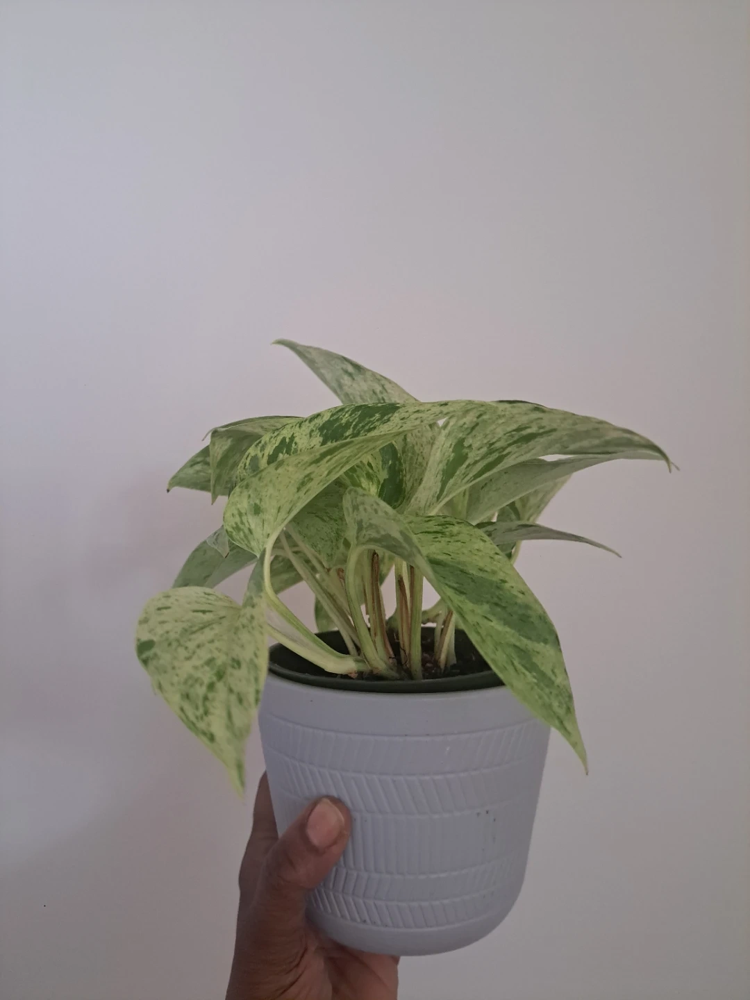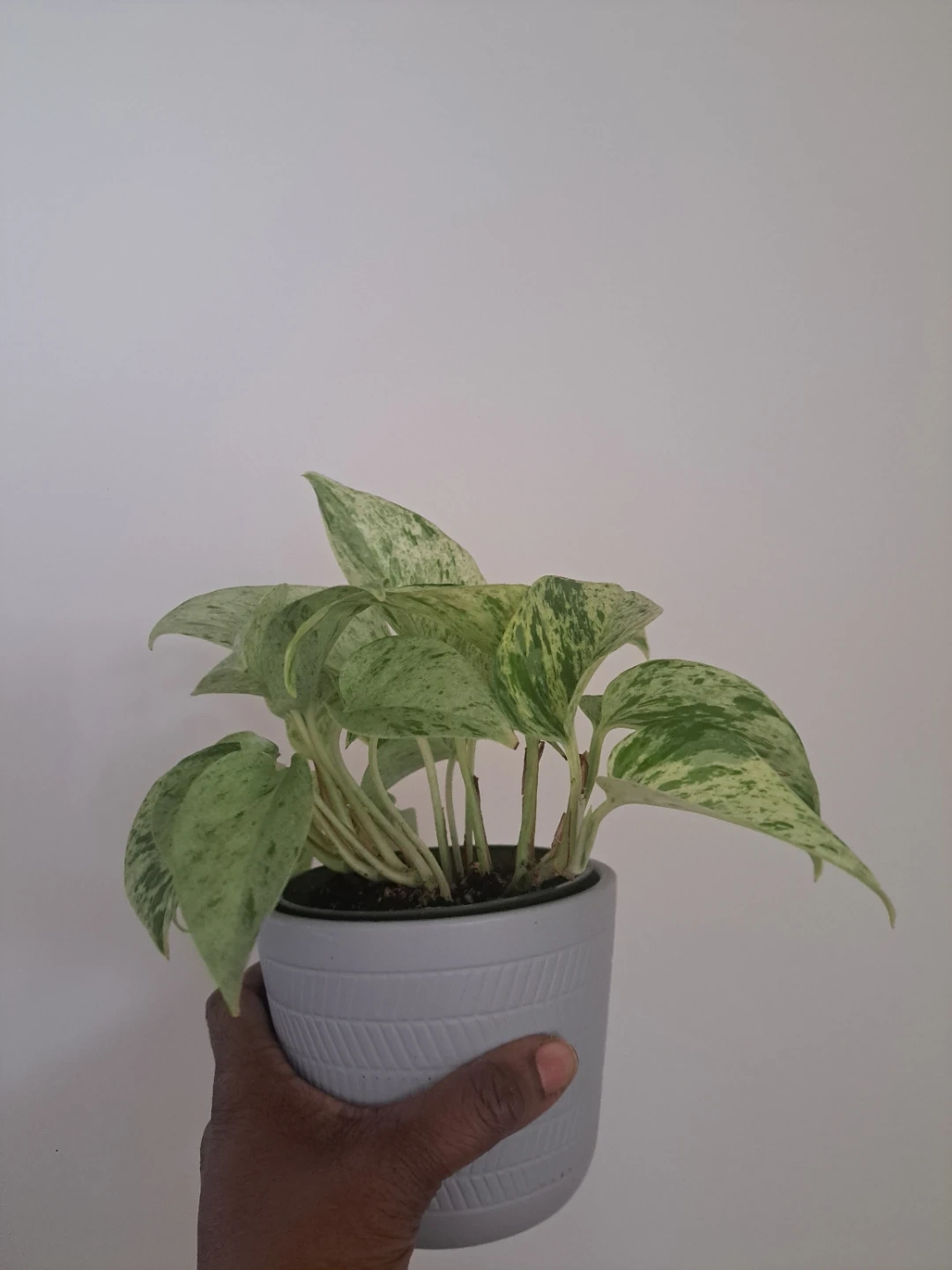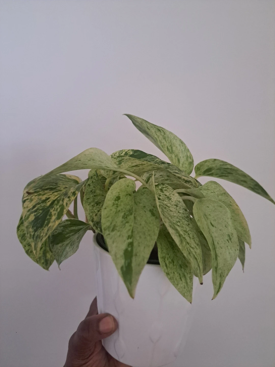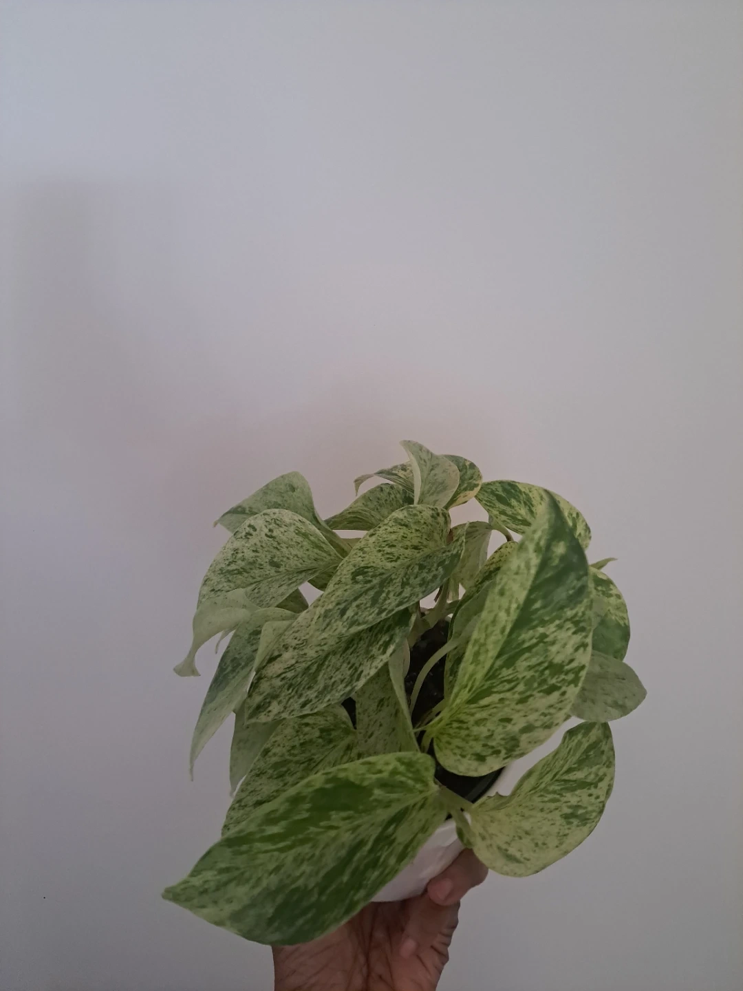 I'm selling a lovely snow queen pothos plant! It has dazzling variegated leaves with a mix of green and cream colours. It's in great condition and would make a wonderful addition to any home or office. 🧡
