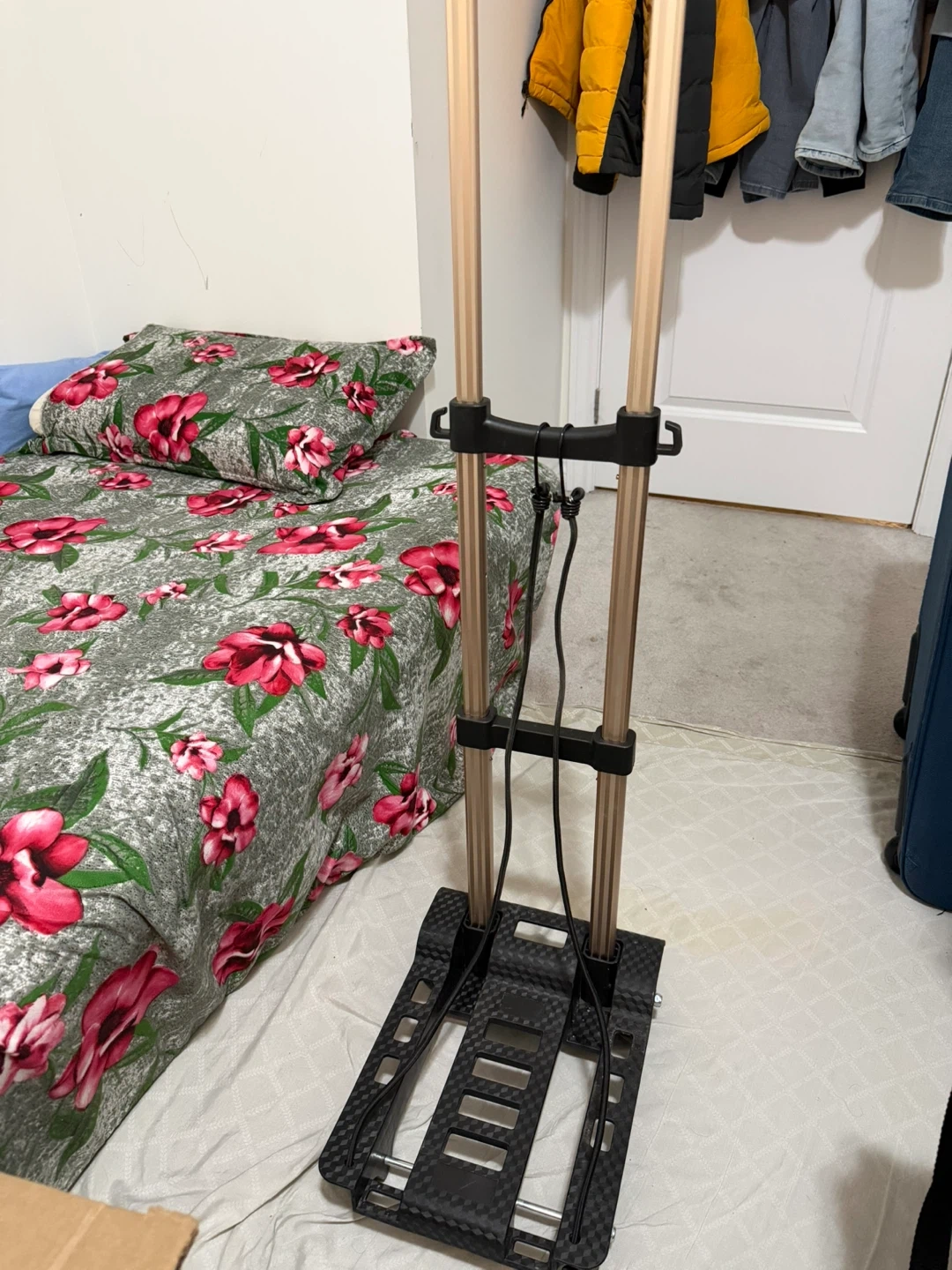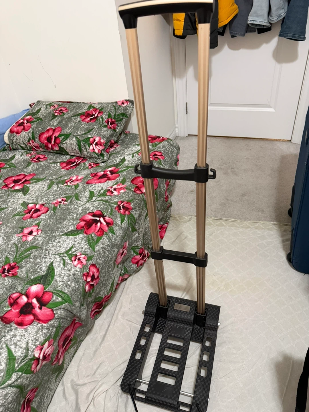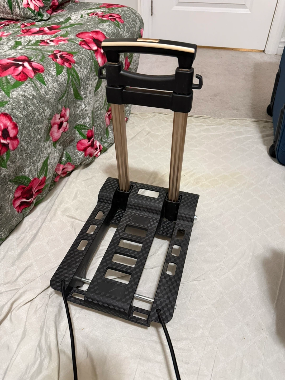 This is a folding luggage cart or hand truck. It appears to be in good condition and ready to help you move your stuff! Great for travel or moving boxes