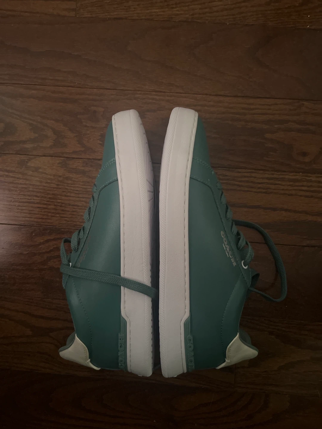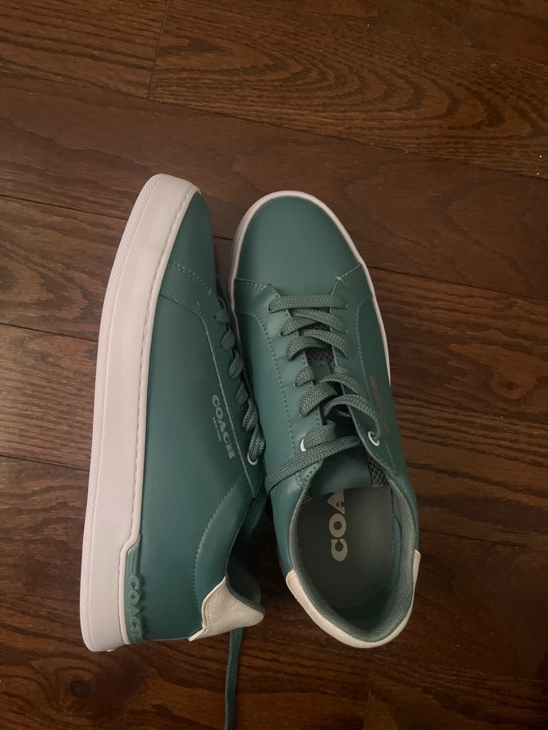 Selling a pair of Coach sneakers in a lovely green colour! The shoes are made of leather and have the Coach logo on the side and sole. Never been worn before.