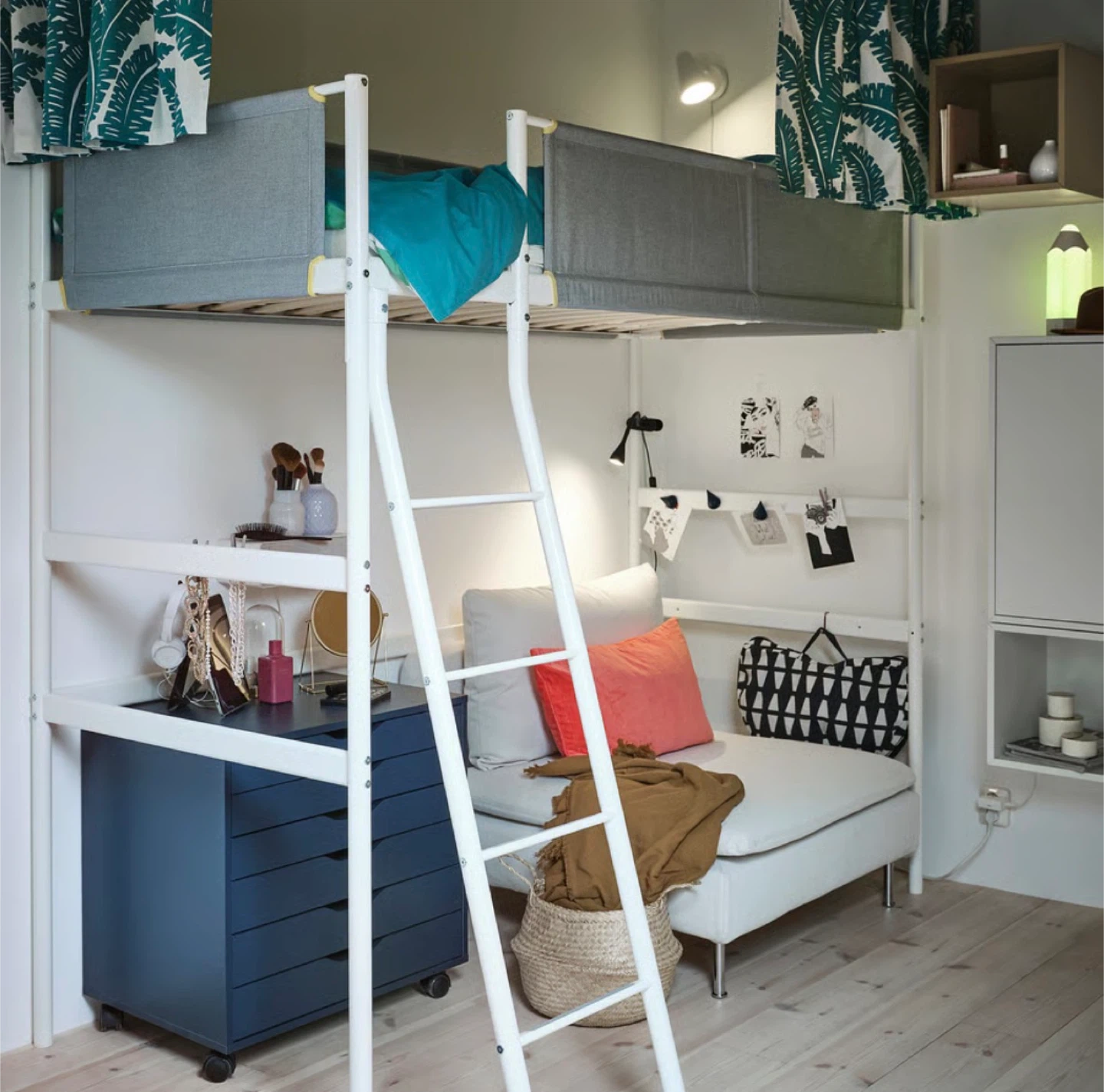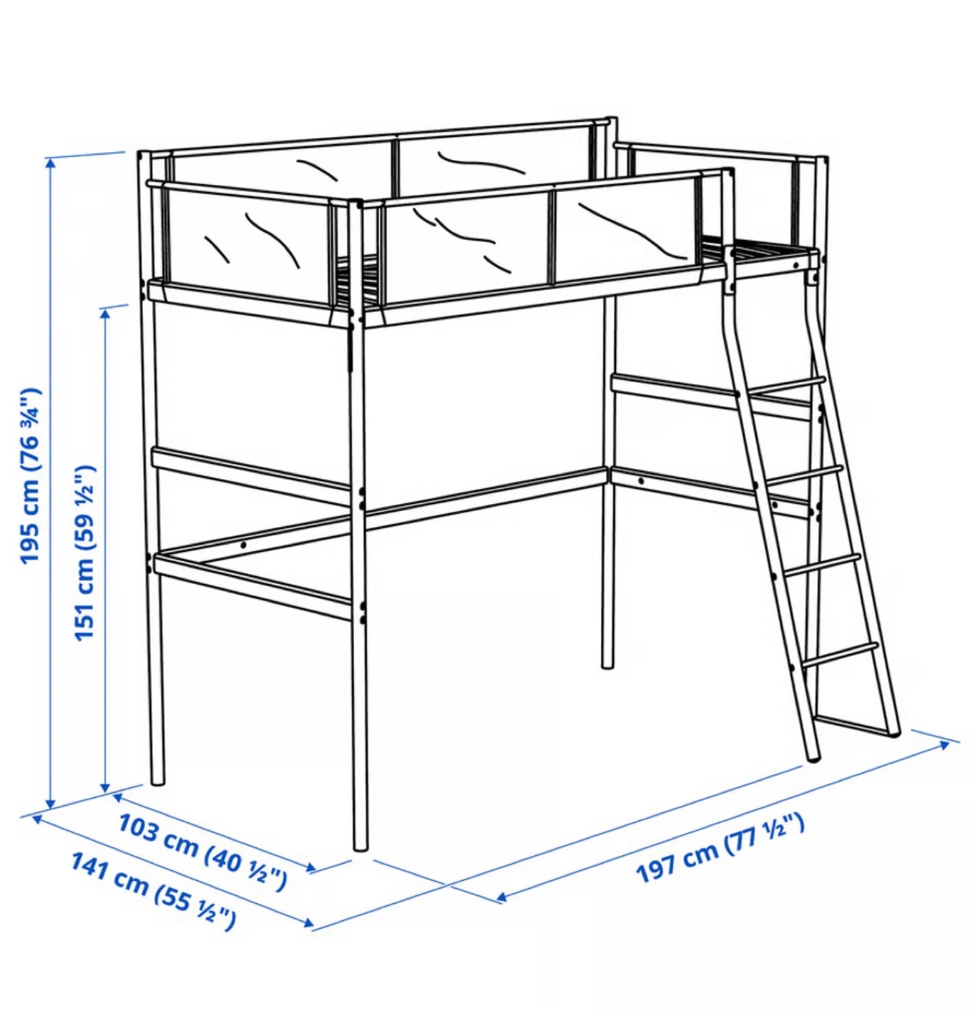 Selling an IKEA Småstad loft bed frame with a desk! It's in great shape and perfect for maximizing space in a smaller room. The frame is white and the bed includes a ladder for easy access.