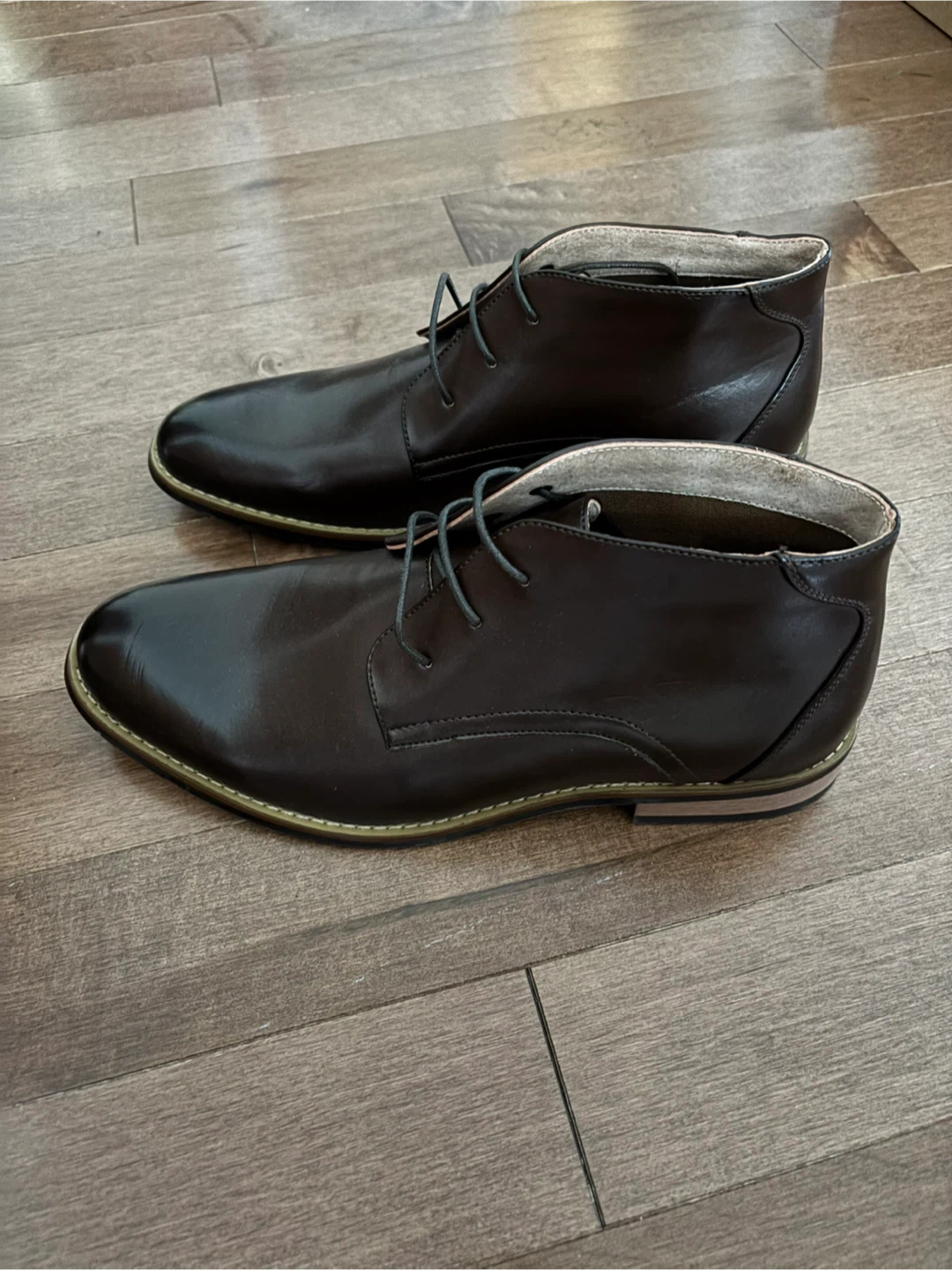 Selling a pair of Zriang chukka boots in brown leather. They are in great condition and ready for a new owner! These boots are stylish and versatile, perfect for dressing up or down. Feel free to reach out if you're interested