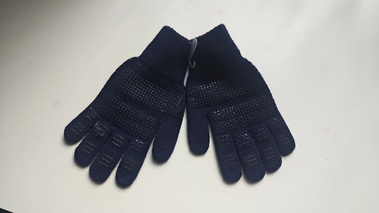 Selling 2 pairs of winter knit gloves in dark navy/black. Both have rubber grip dots on the palms/fingers — nice for holding your phone, driving, TTC poles, carrying bags, etc. Soft and warm, stretchy fit.
